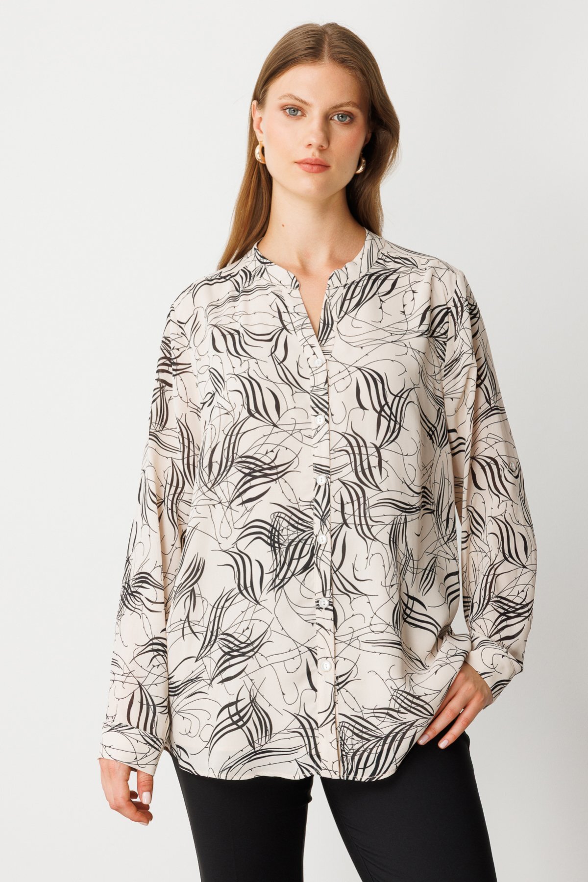 ميزات بلوزة منقوشة بياقة القاضي من Ekol