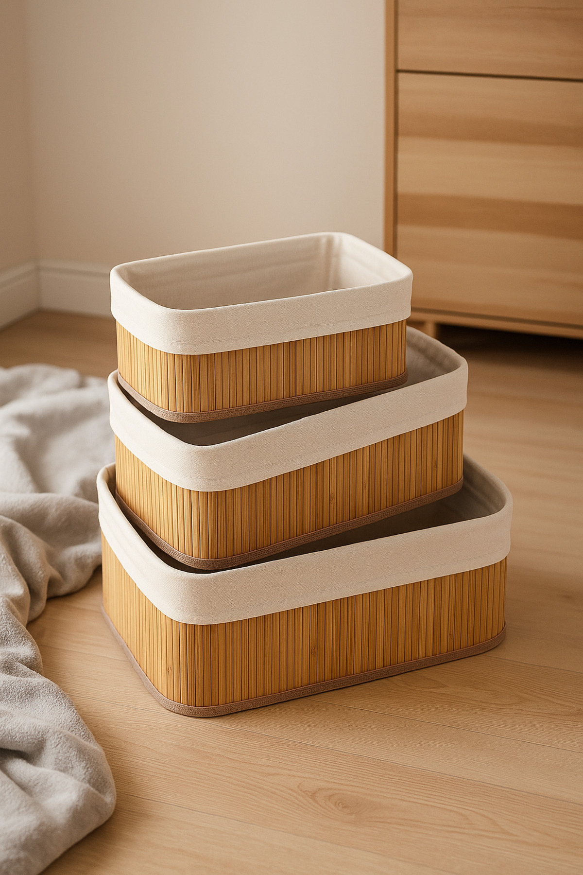 ela777 سلة مستطيلة متعددة الأغراض من الخيزران مكونة من 3 قطع