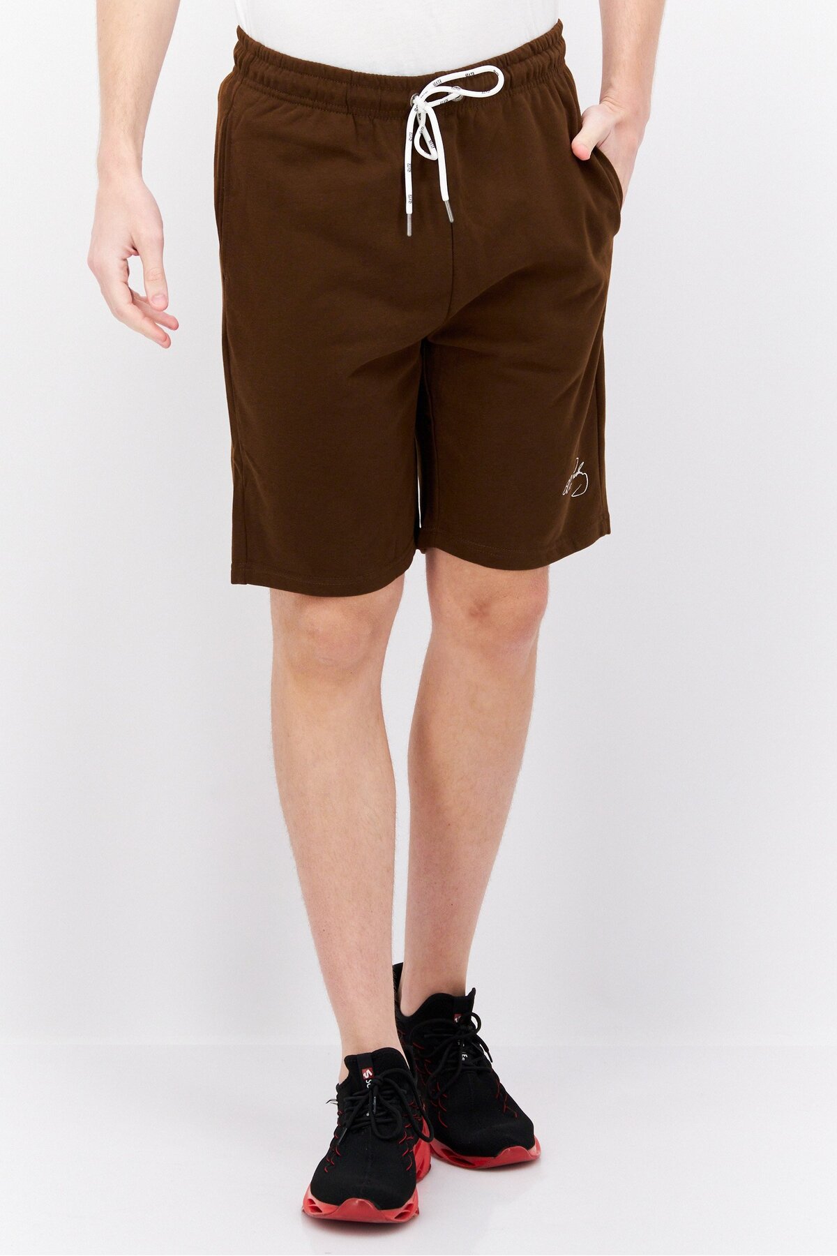 Elvis شورت رجالي مطرز، بني