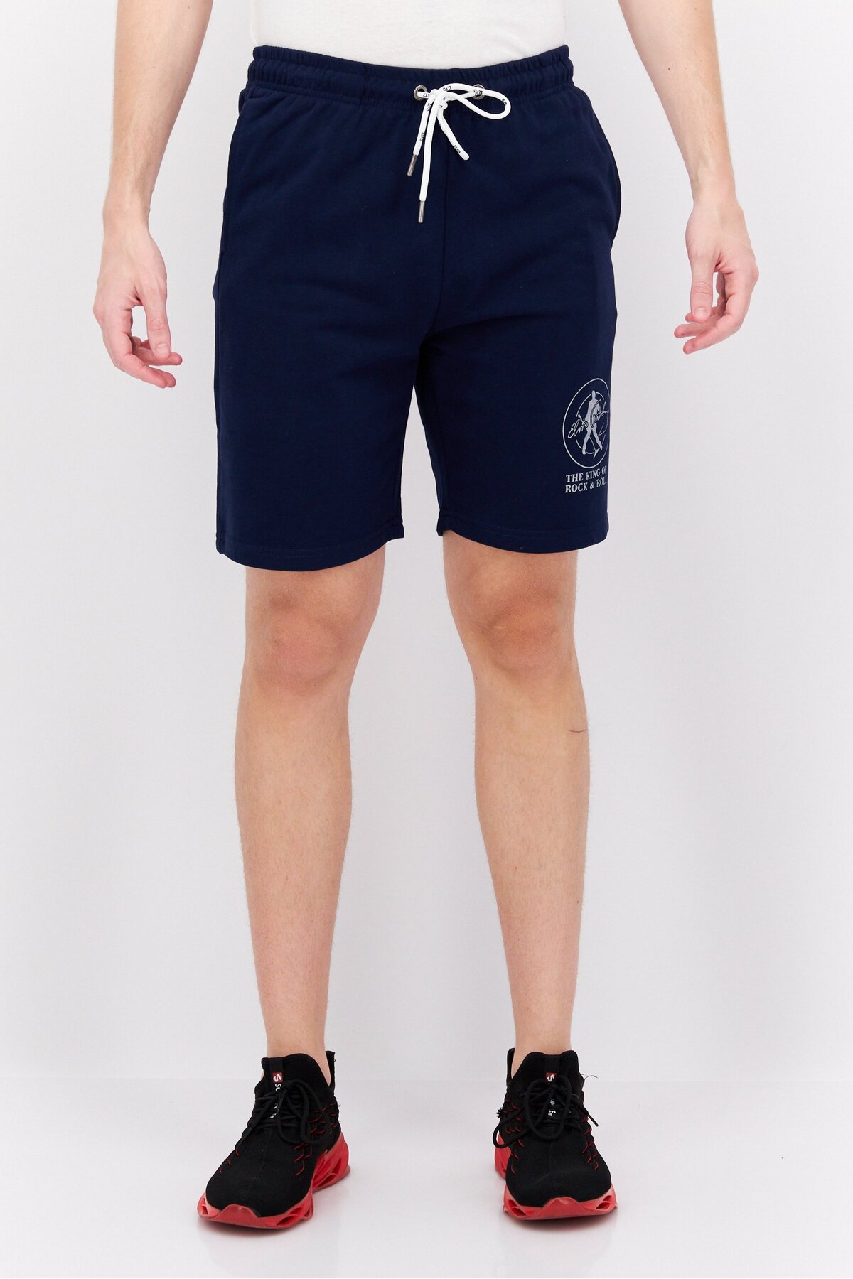 Elvis شورت رجالي أساسي مطبوع عليه رسوم بيانية، أزرق داكن