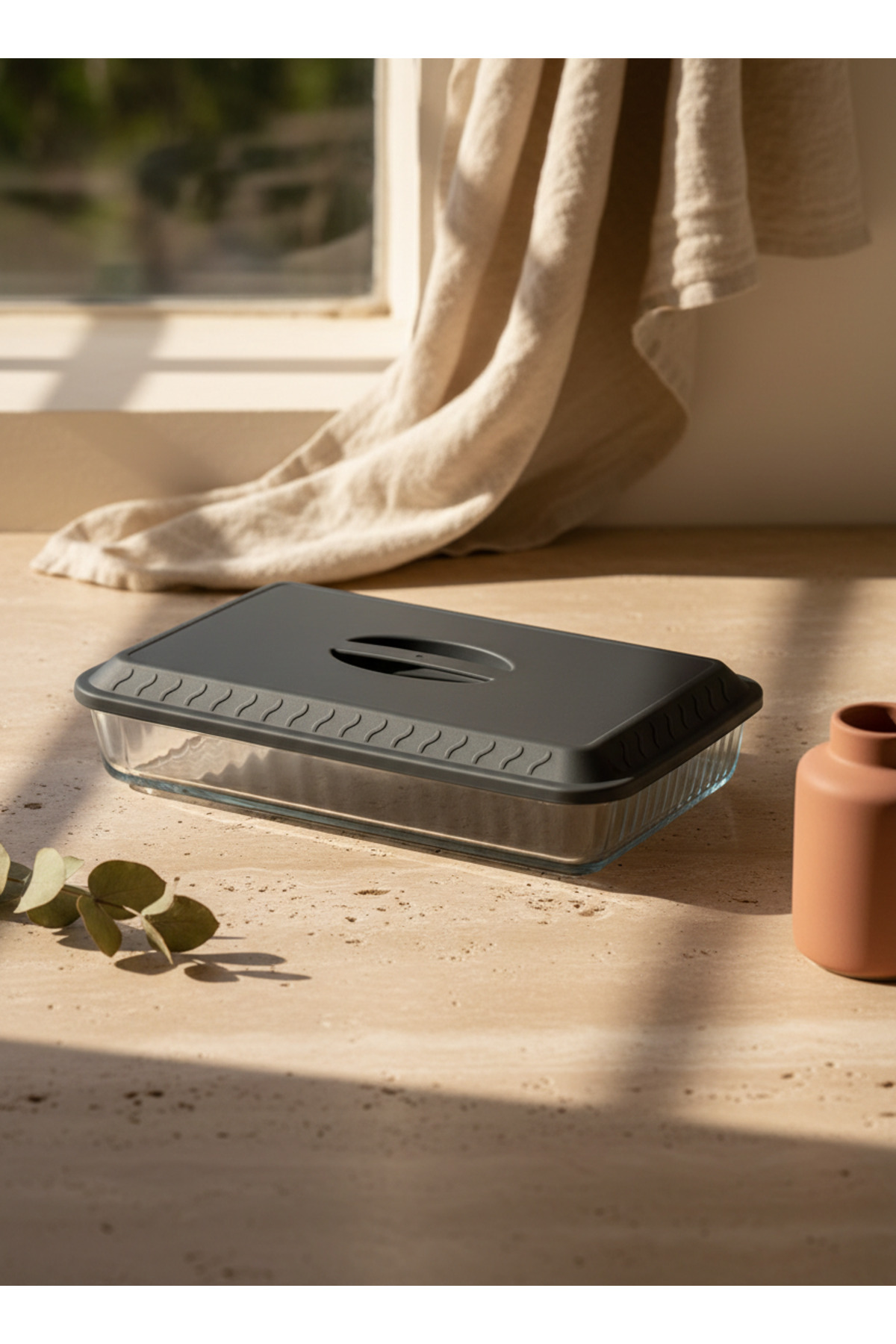 Emal Home غطاء حاوية تخزين بلاستيكية متوافقة مع الزجاج البورشيمي مستطيل الشكل