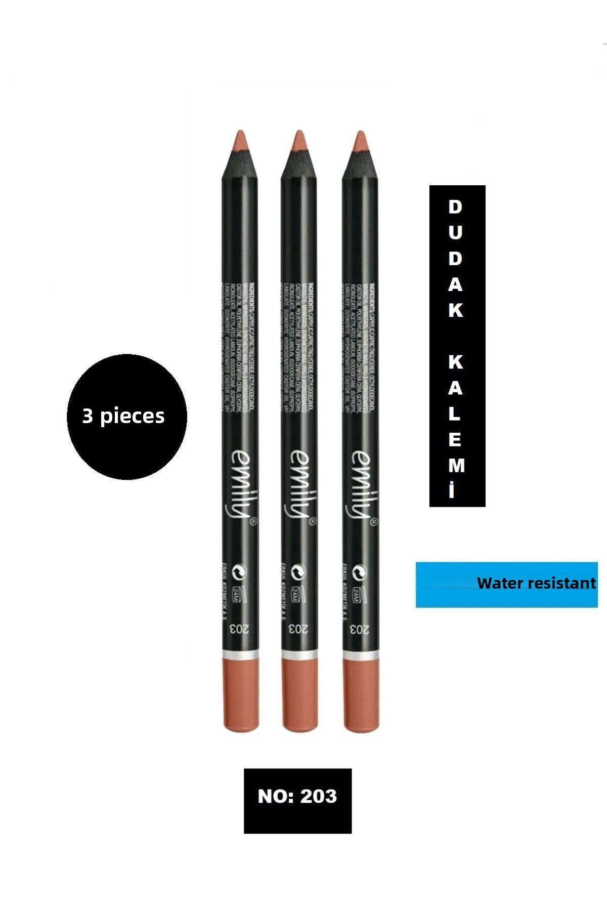 Emily Dudak Kalemi 3'lü No: 203 (Dudaklarınızın daha dolgun görünmesini sağlamaya yardımcı olur.Kolay sürülebilen bir forma sahiptir.İster tek başına ister rujunuzun üzerine tercih edebilirsiniz.)