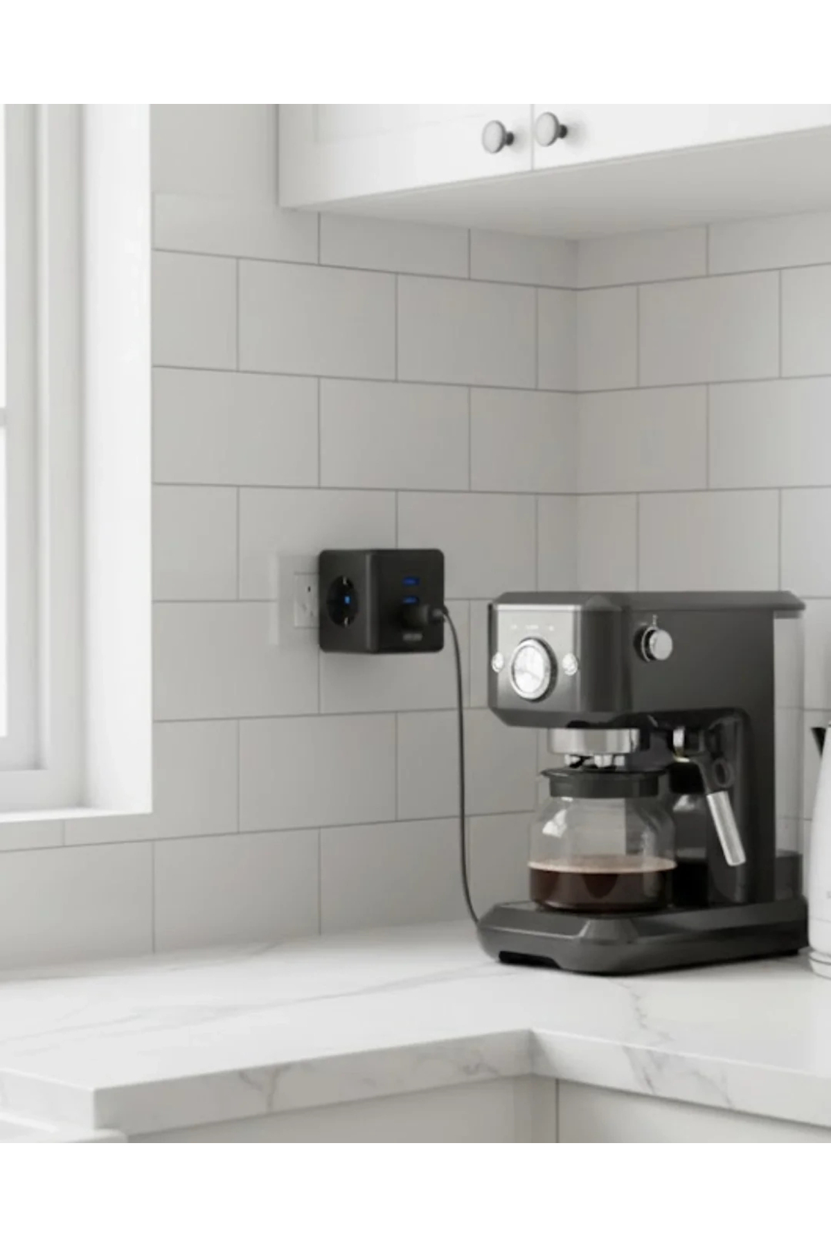 Epilons مقبس كهربائي مكعب الشكل مع حماية من التيار والجهد، يدعم 3 منافذ USB