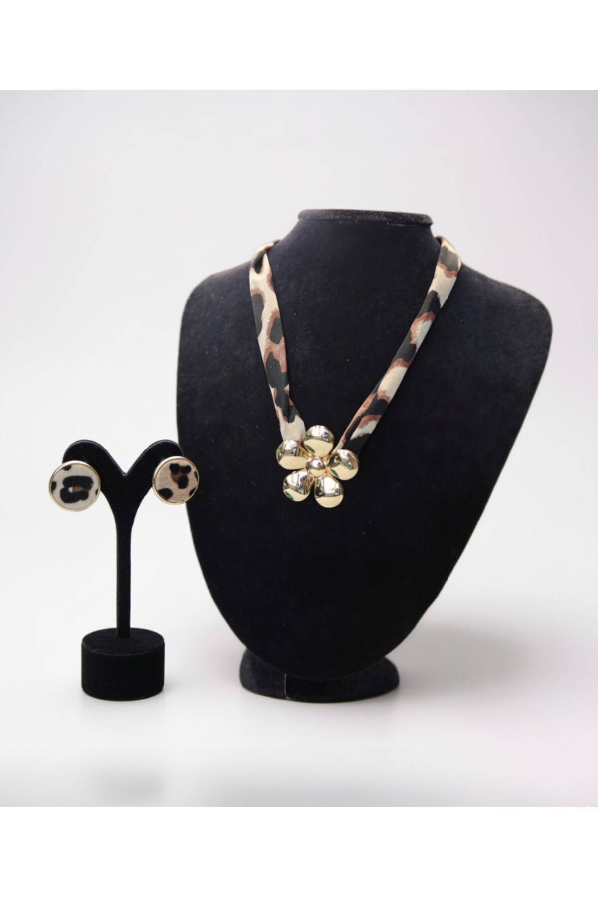 Er-Nev قلادة على شكل زهرة بنمط الفهد + أقراط
