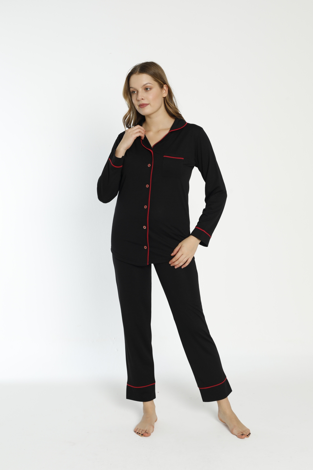 ERDENİZ TEKSTİL طقم بيجامة بأزرار بيضاء