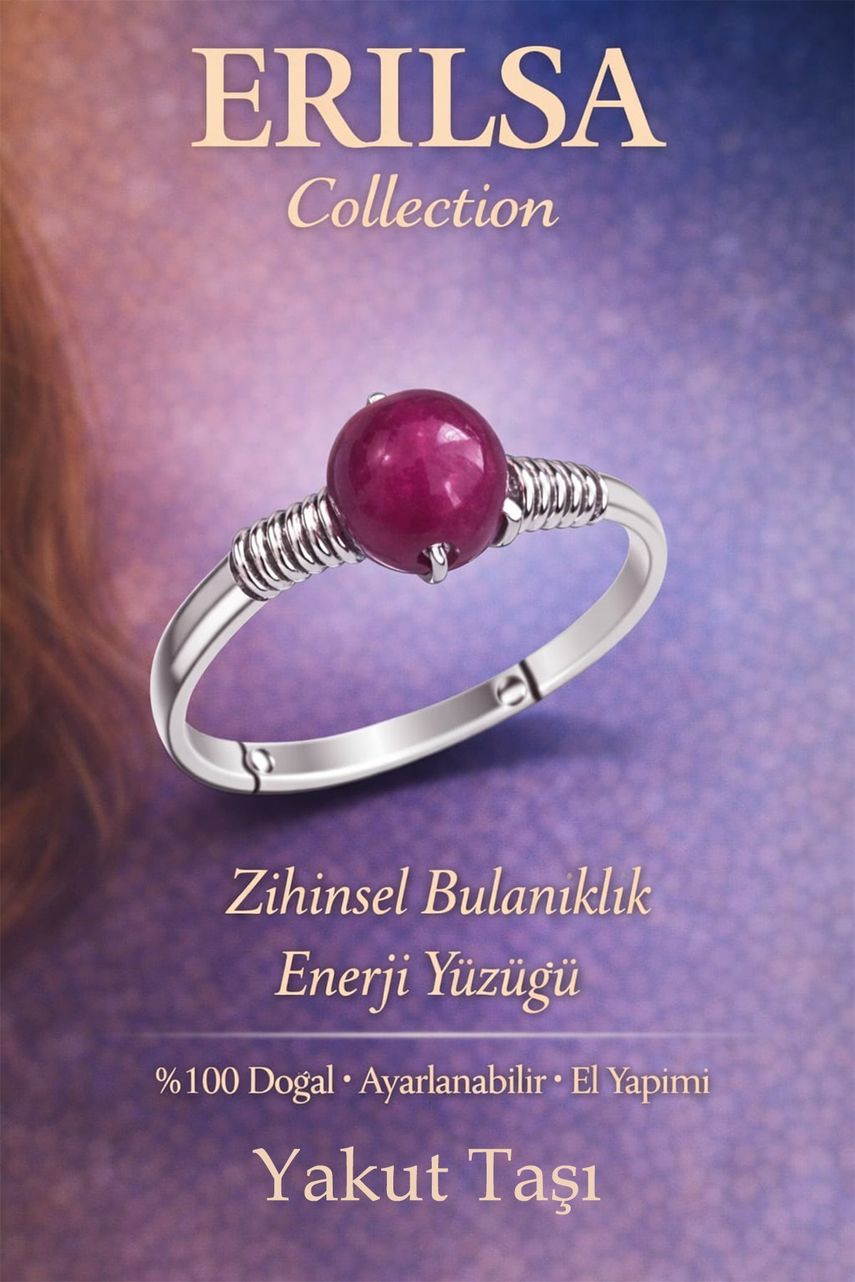 Erilsa خاتم الطاقة العقلية المعتمد - حجر الياقوت، علبة رفيعة قابلة للتعديل، برج الحمل، الأسد، العقرب