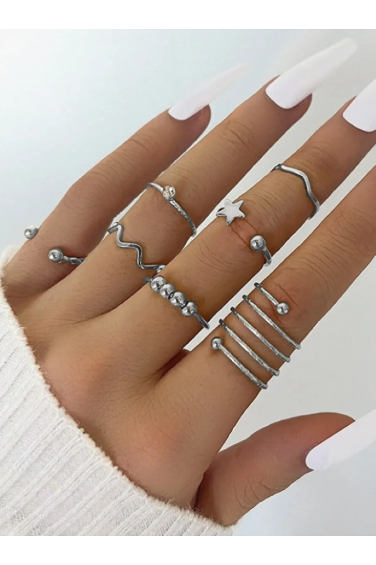 ميزات مجموعة من 7 خواتم قابلة للتعديل وحلقات مفصلية باللون الفضي من Ervalina