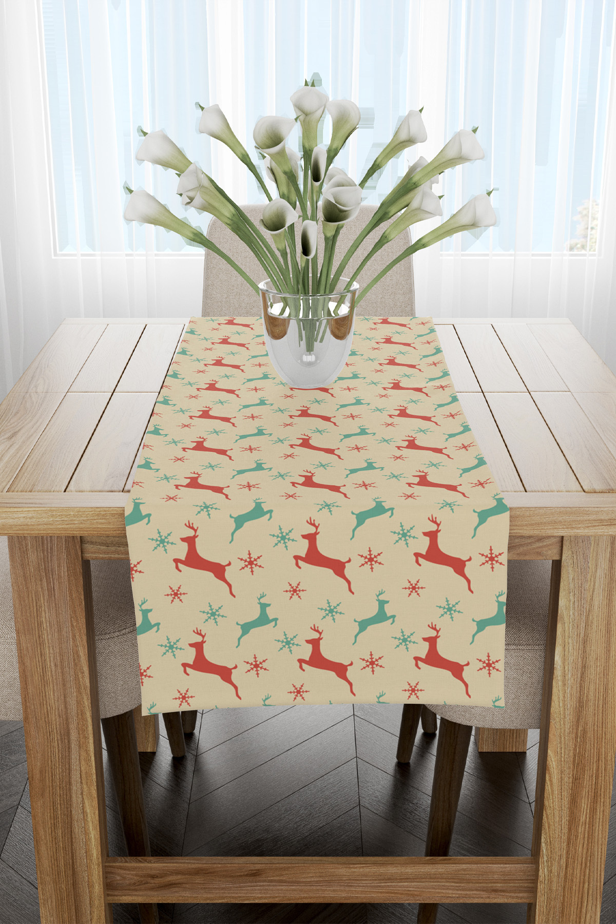 ميزات سجادة عيد الميلاد بنمط الغزلان باللونين الأخضر والأحمر من EsnafAli