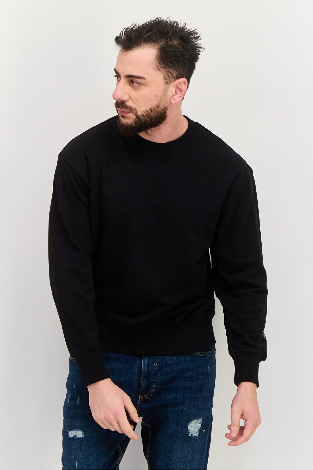 Esprit سويت شيرت رجالي سادة بأكمام طويلة ورقبة دائرية، أسود