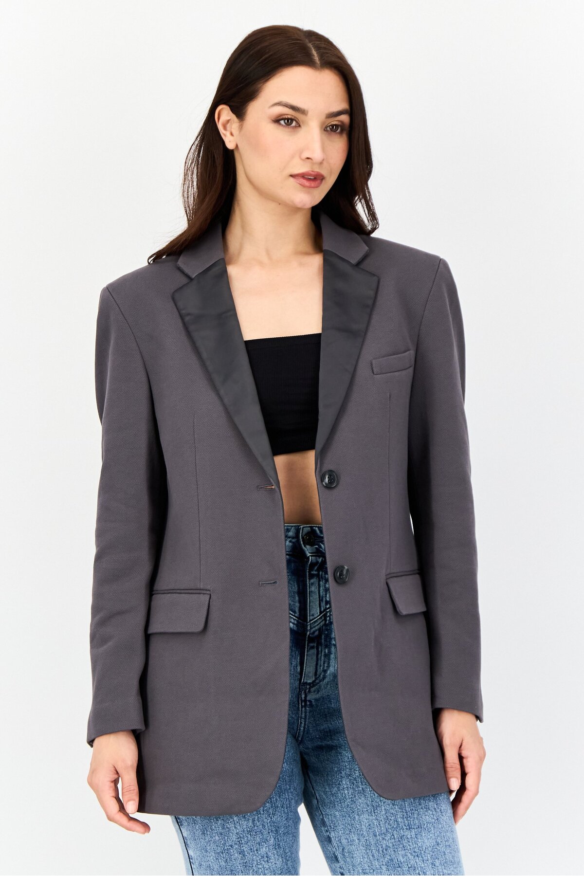 ميزات بليزر رسمي سادة بقصّة عادية للنساء، رمادي من Esprit