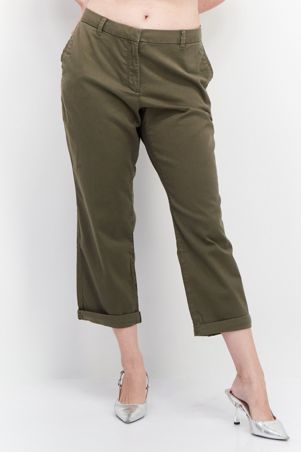 ميزات بنطلون نسائي سادة بقصّة عادية، زيتوني من Esprit