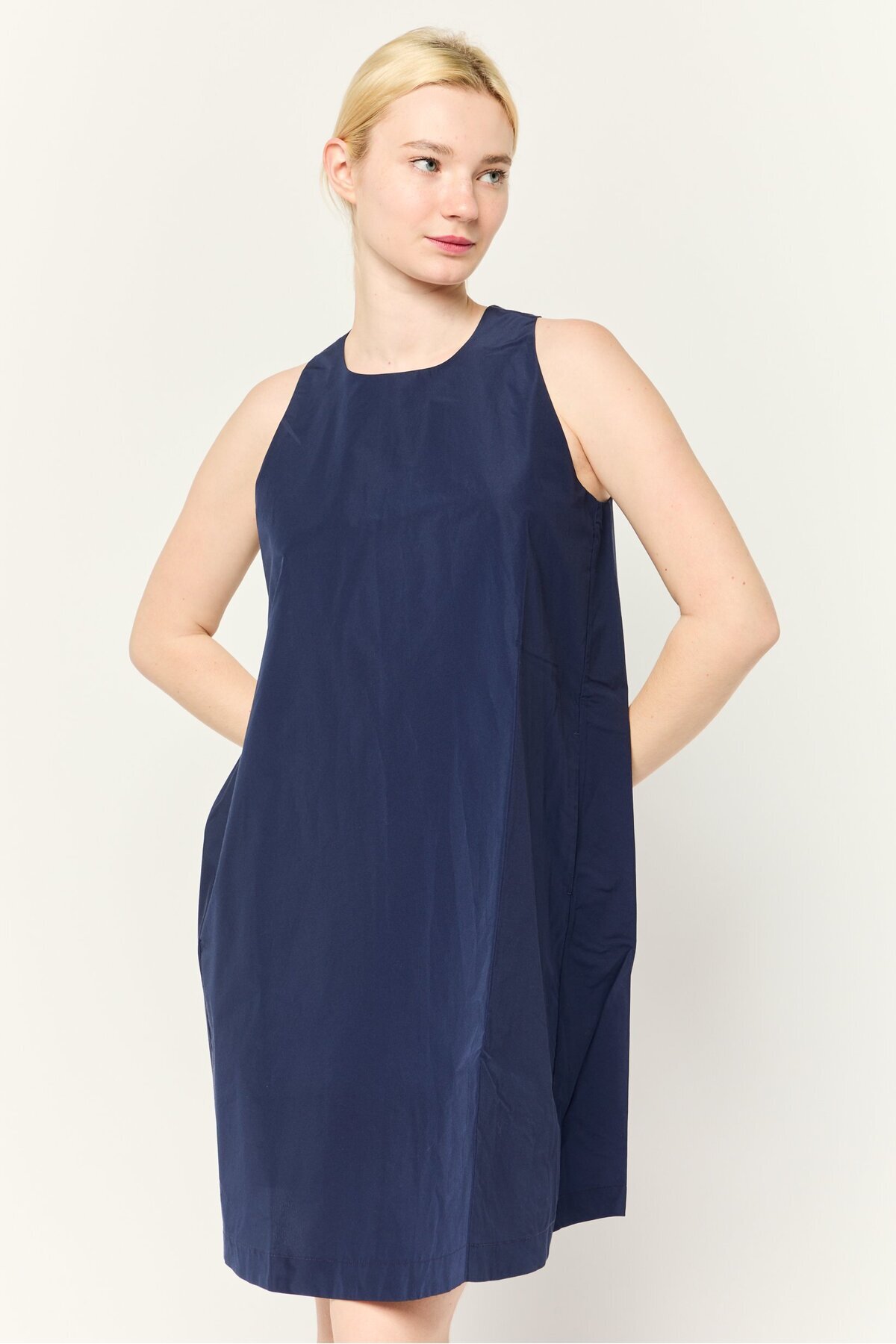 ميزات فستان قصير سادة للنساء بخطوط على شكل حرف A، أزرق داكن من Esprit