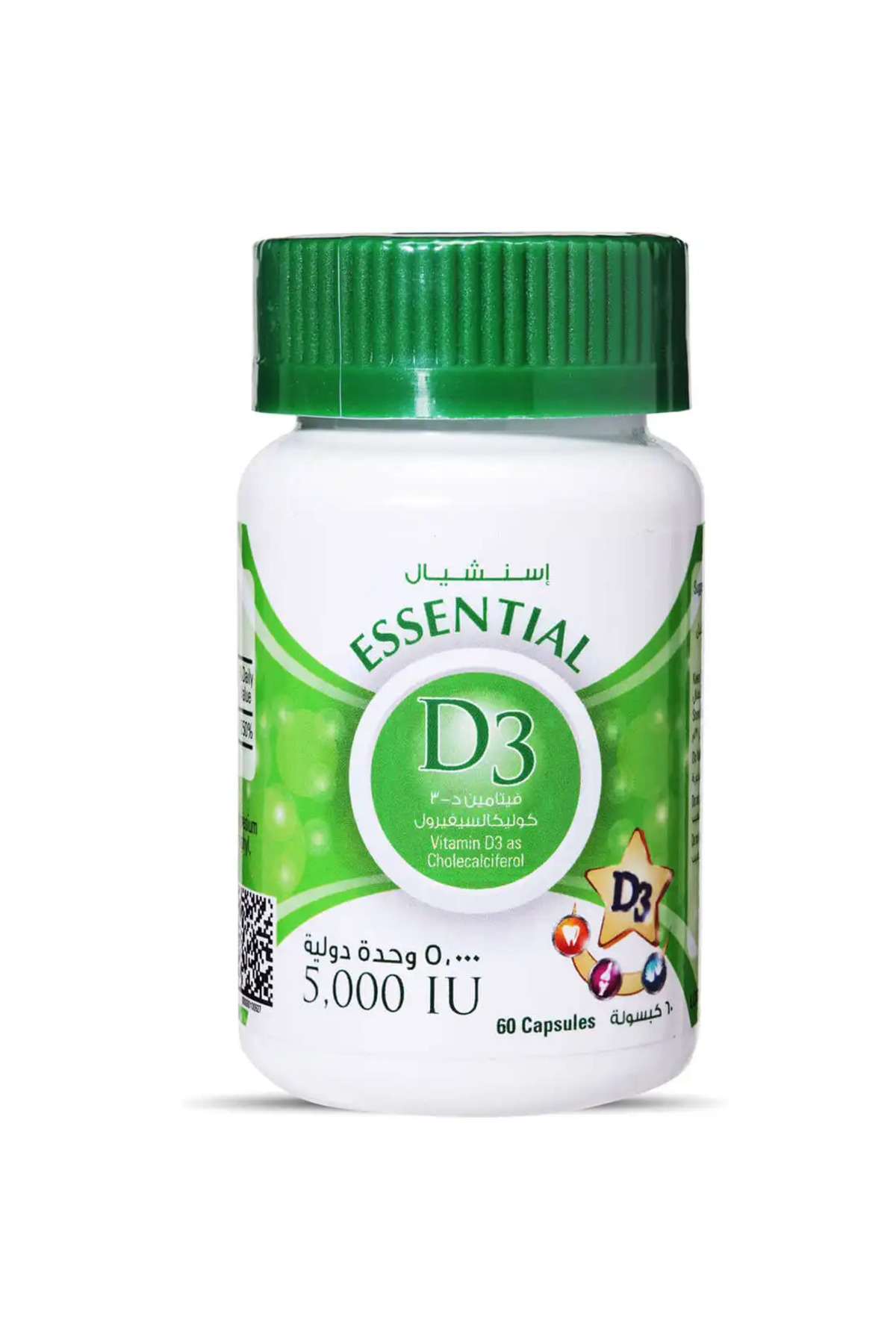ESSENTİAL فيتامين د-3 الأساسي 5000 وحدة دولية 60 كبسولة