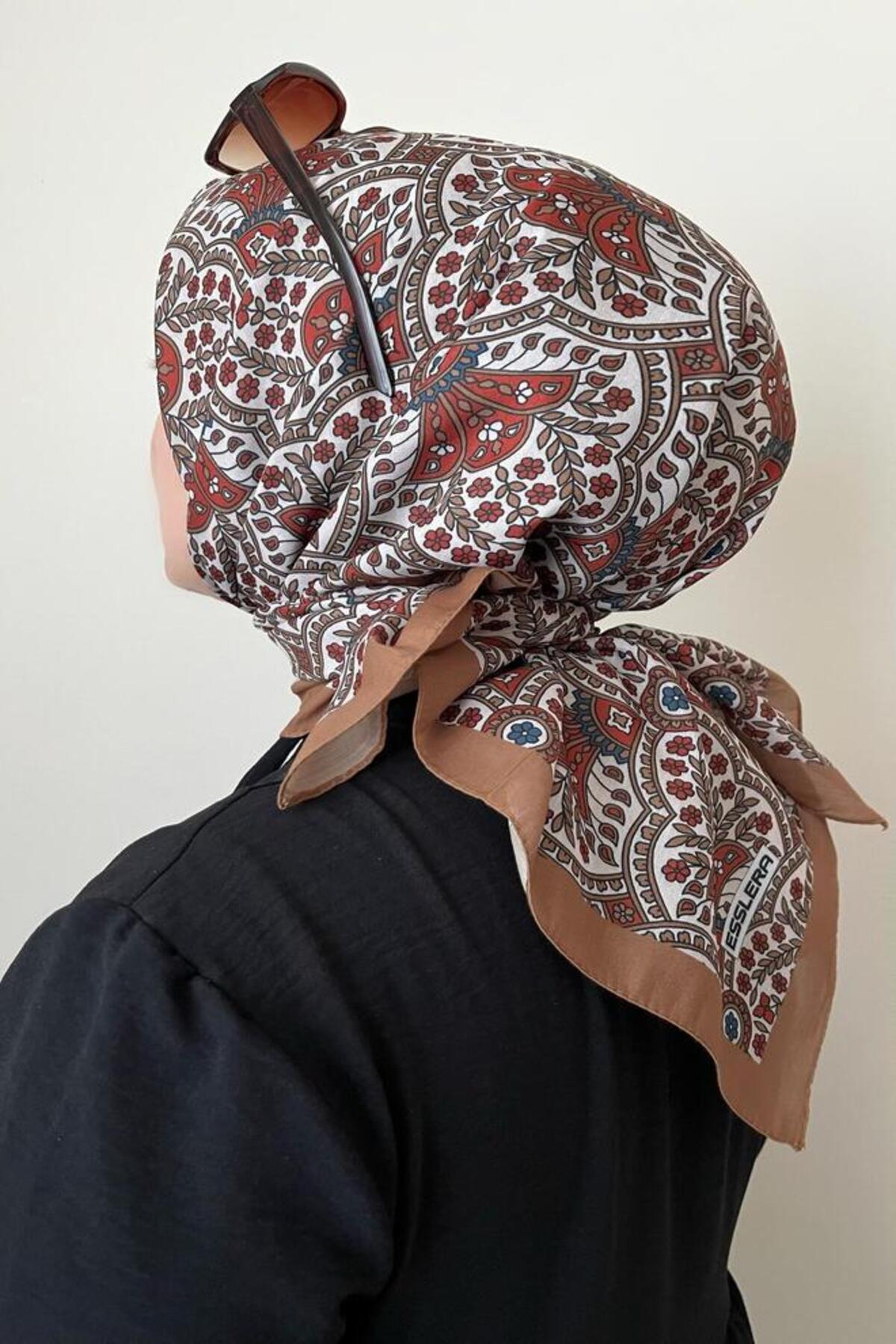 ESSLERA وشاح بني منقوش ناعم