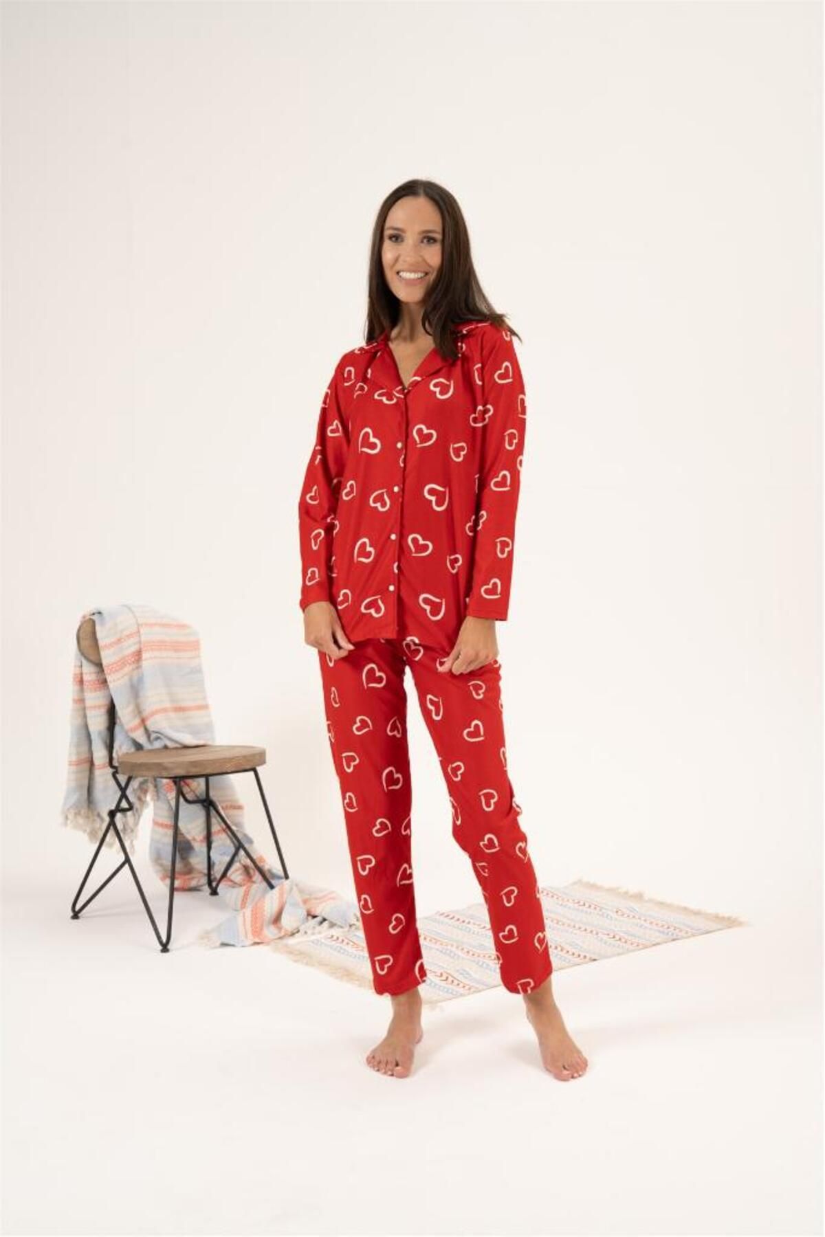 ميزات طقم بيجامة من جلد الغزال بأزرار أمامية منقوشة من Estiva