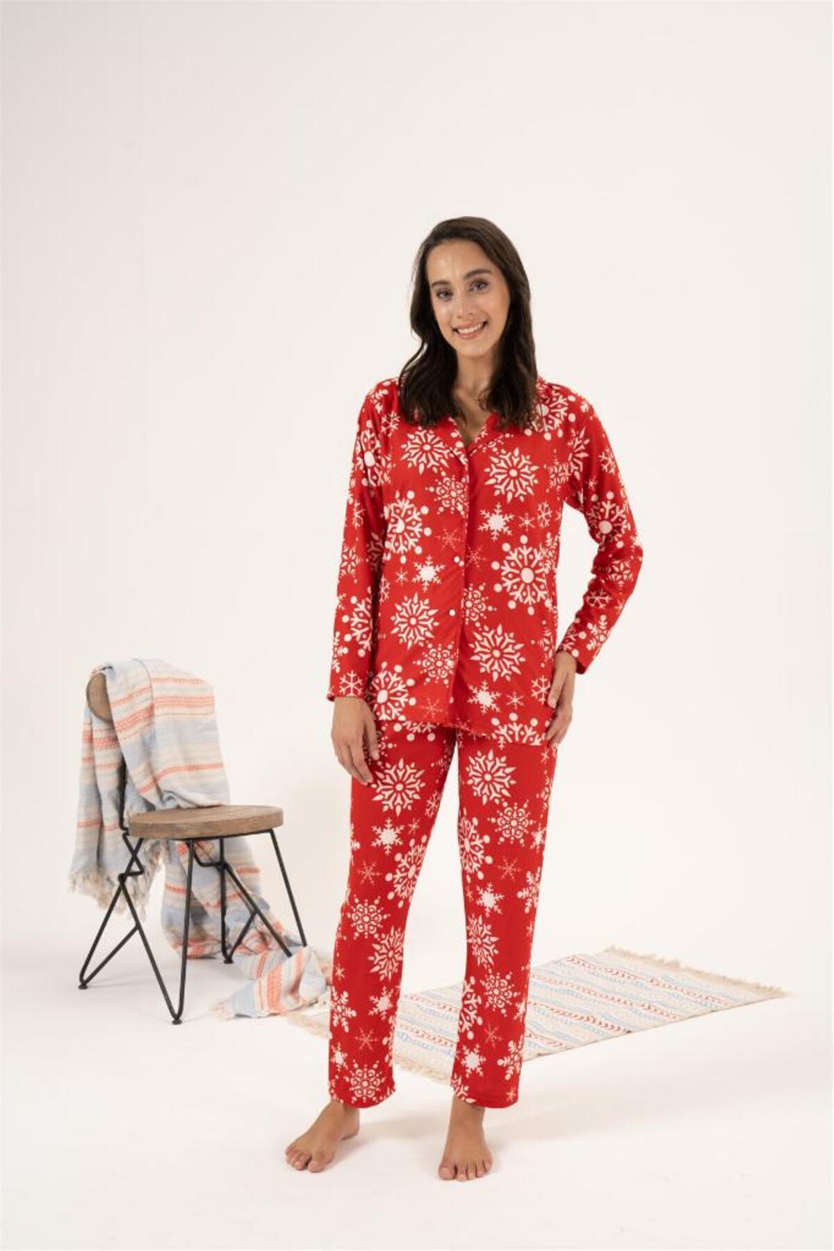 ميزات بدلة بيجامة من جلد الغزال بأزرار أمامية بنمط ندفة الثلج من Estiva