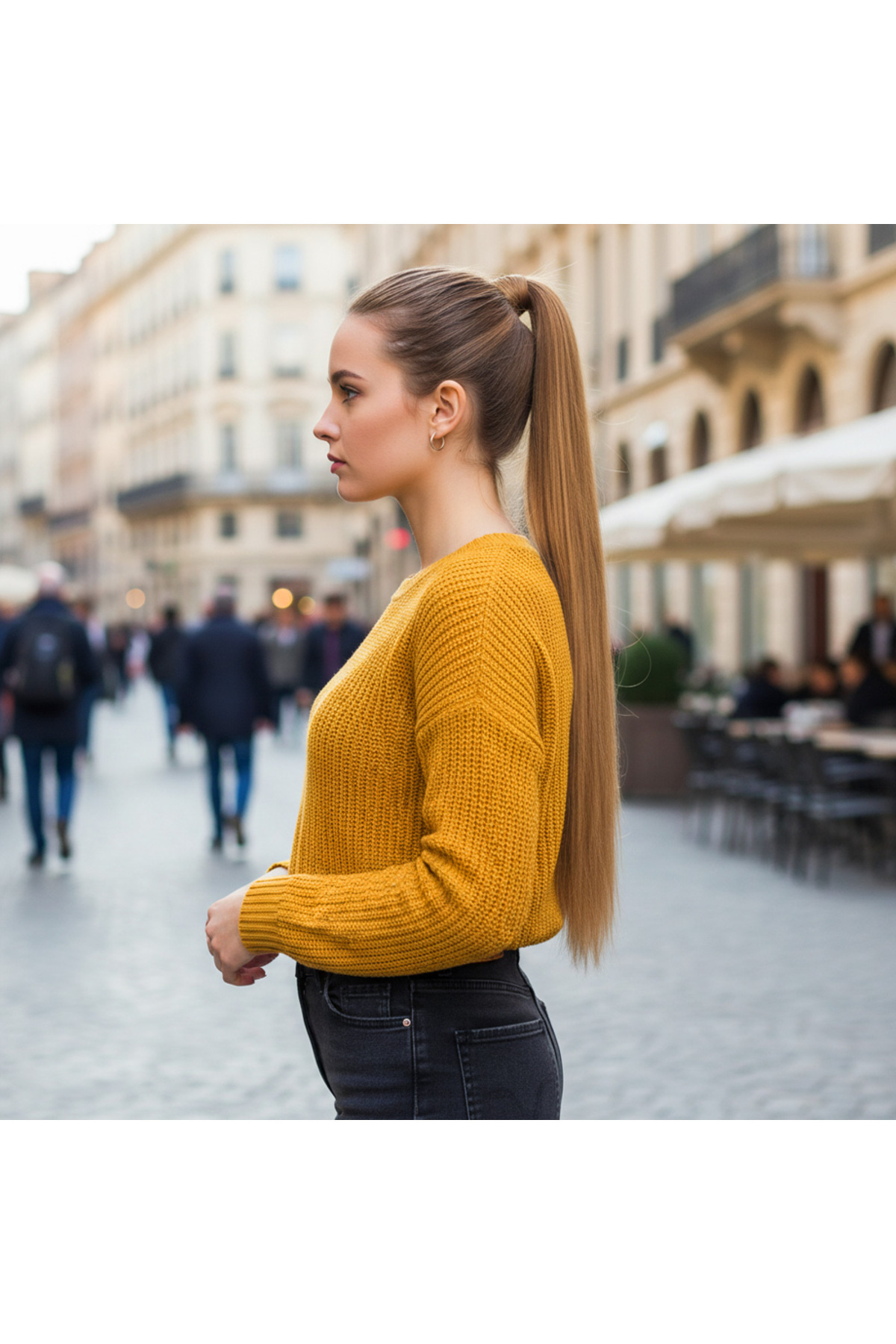 Ethab Ticaret شعر مستعار من الألياف على شكل ذيل حصان سحري / بني فاتح