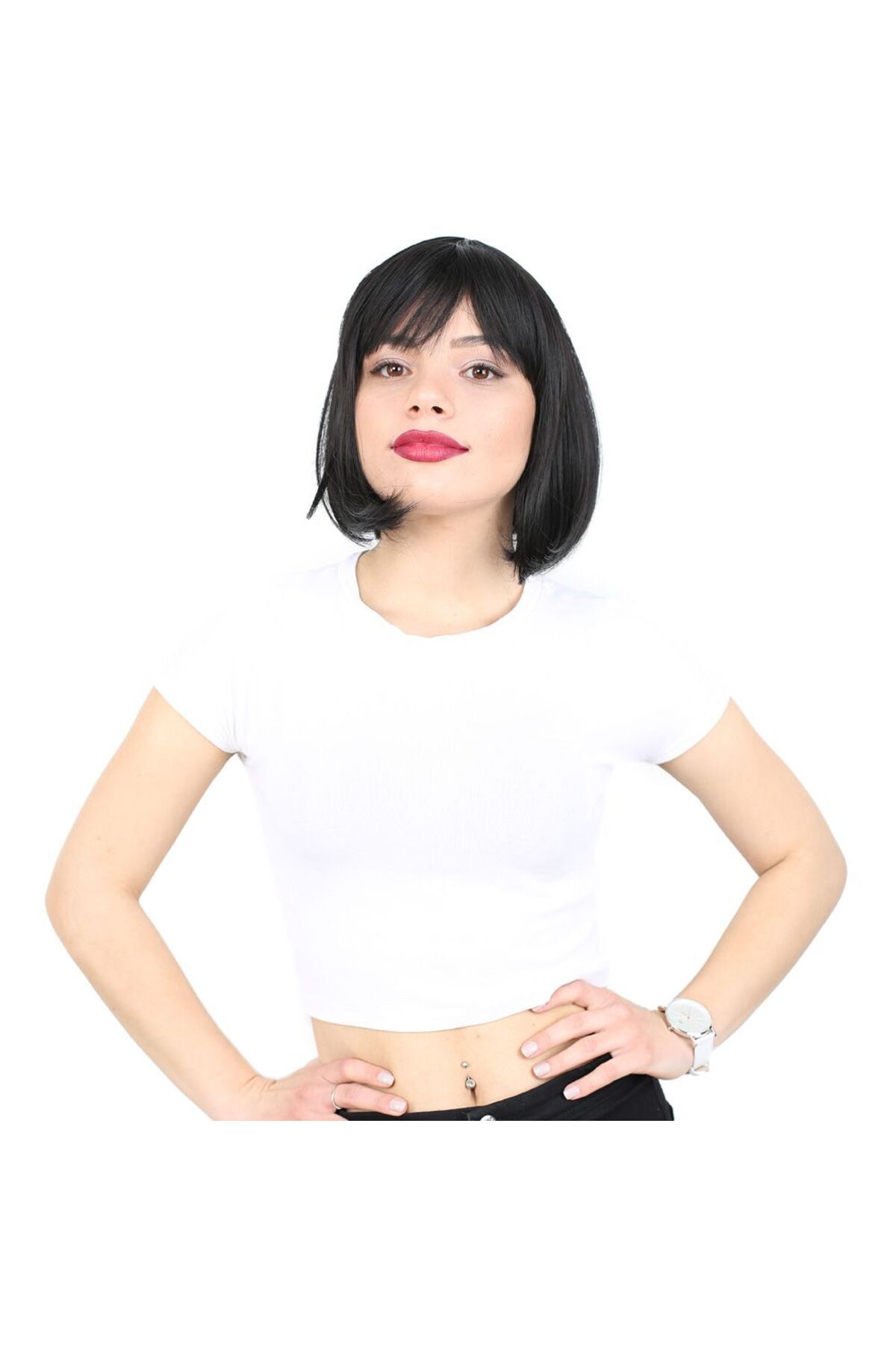 Ethab Ticaret شعر مستعار من الألياف مع غرة مفرودة / أسود