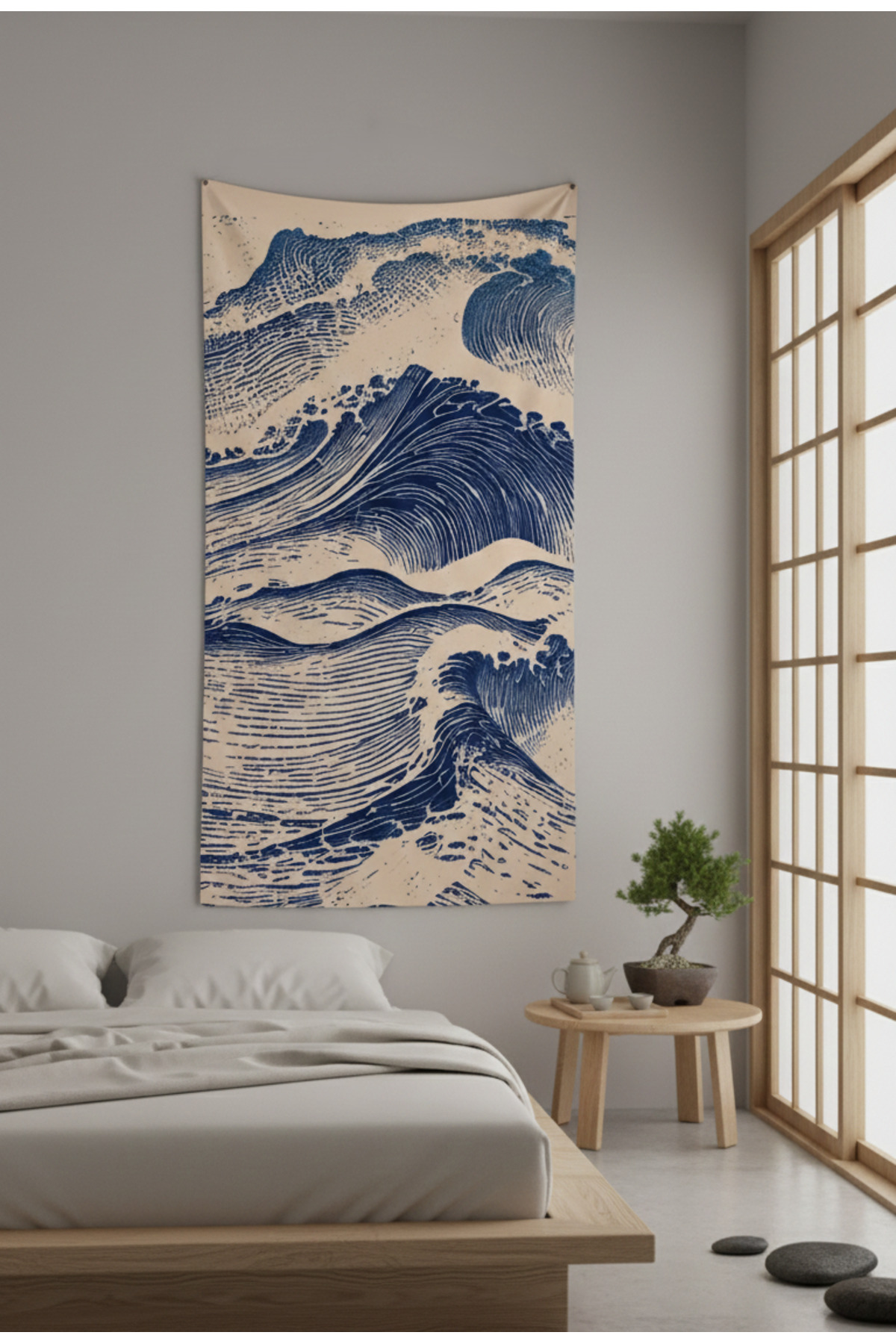 Etnik Dekor ورق حائط مطبوع رقميًا بنمط موجات الحبر