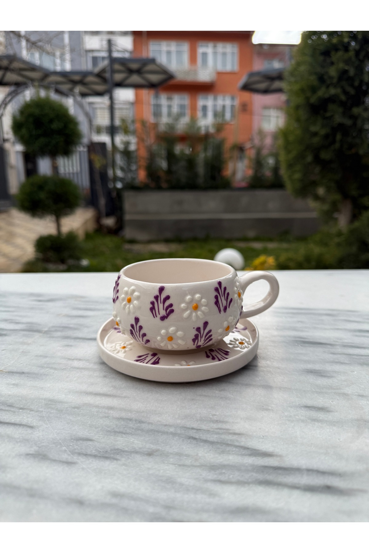 ميزات كوب/طبق سيراميك منقوش بنقشة البابونج من evlashop