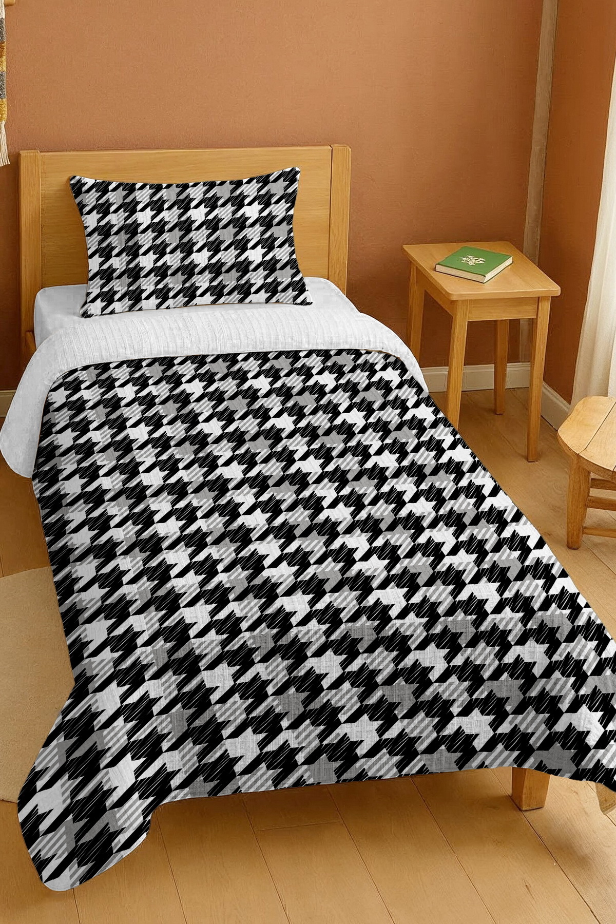 ميزات طقم بيكيه فردي بنقشة هاوند هاوند مصنوع من القطن بنسبة 100% من EVPANYA