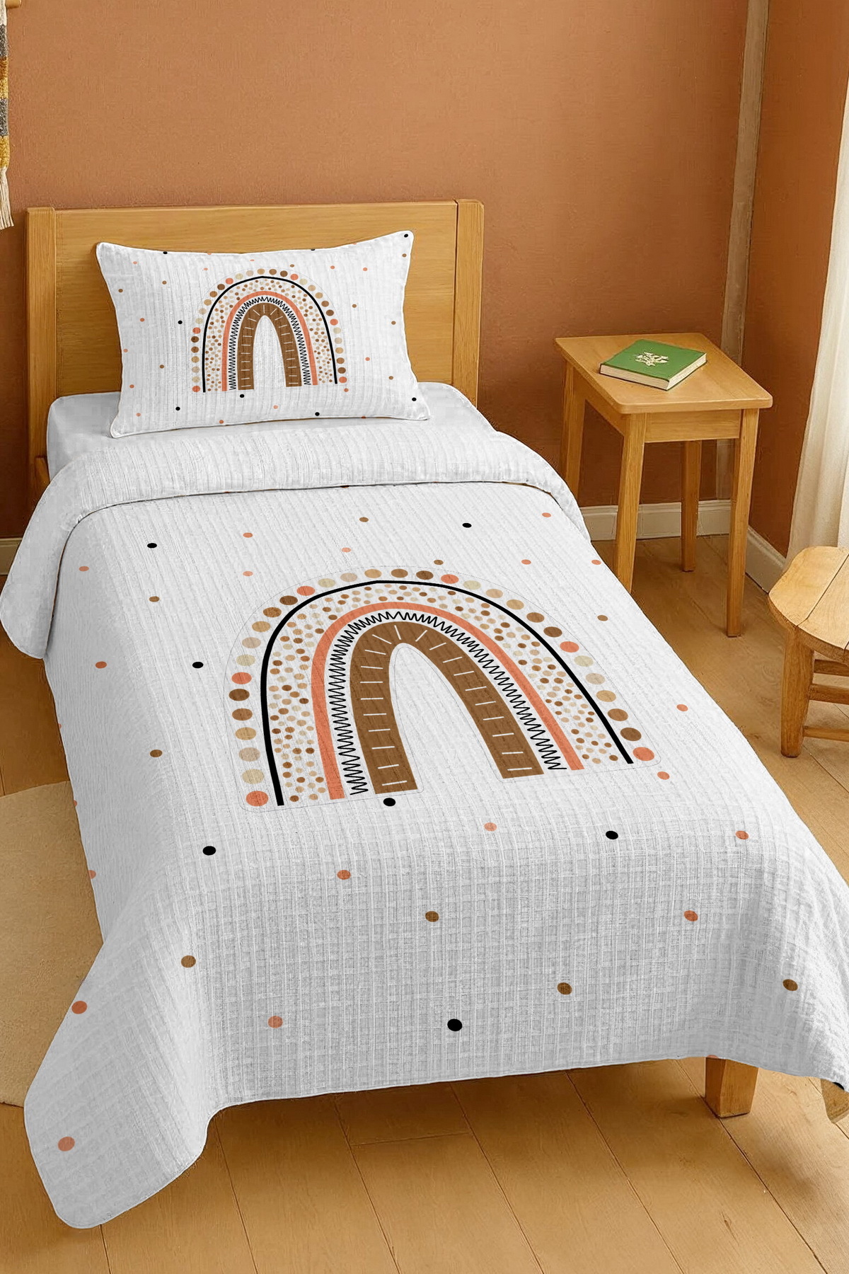 ميزات طقم بيكيه فردي بنمط قوس قزح من القطن الخالص بنسبة 100% من EVPANYA