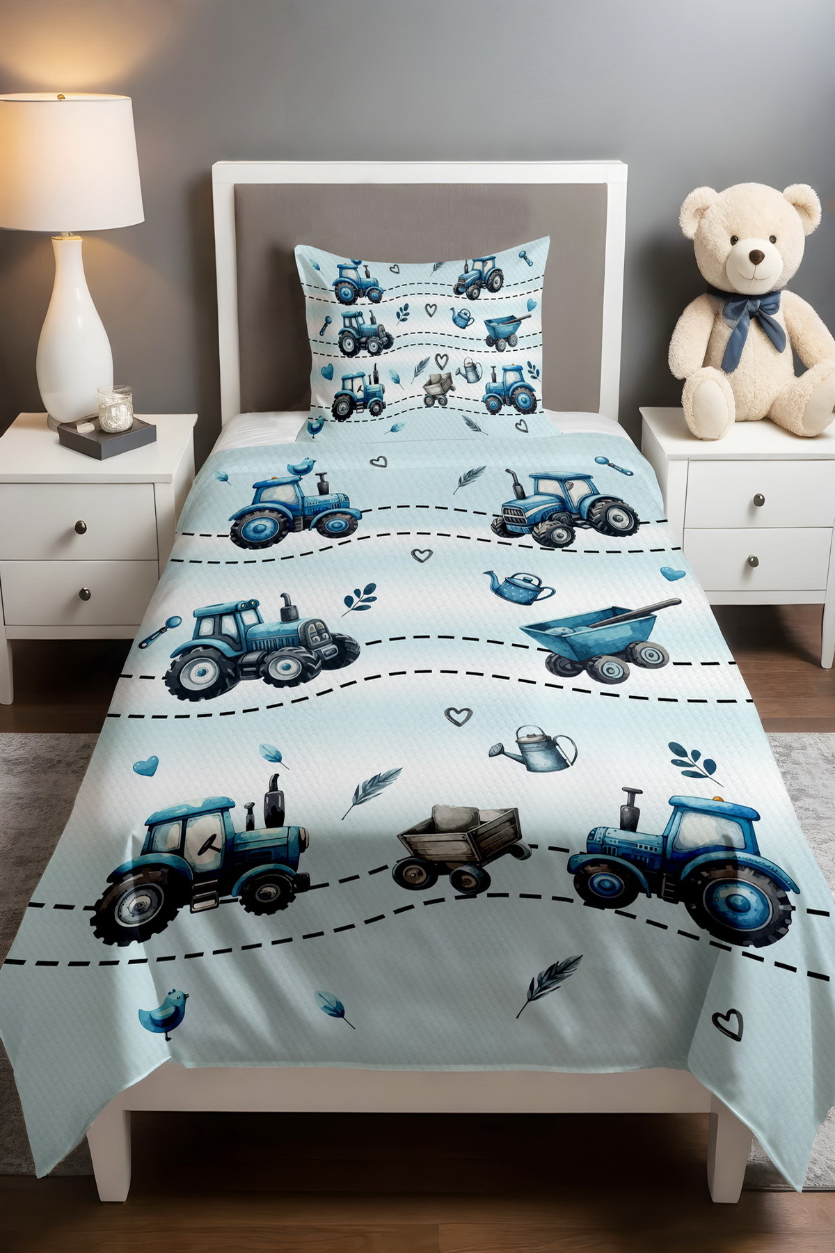 ميزات مجموعة بيكيه منقوشة باللون الأزرق من EVPANYA