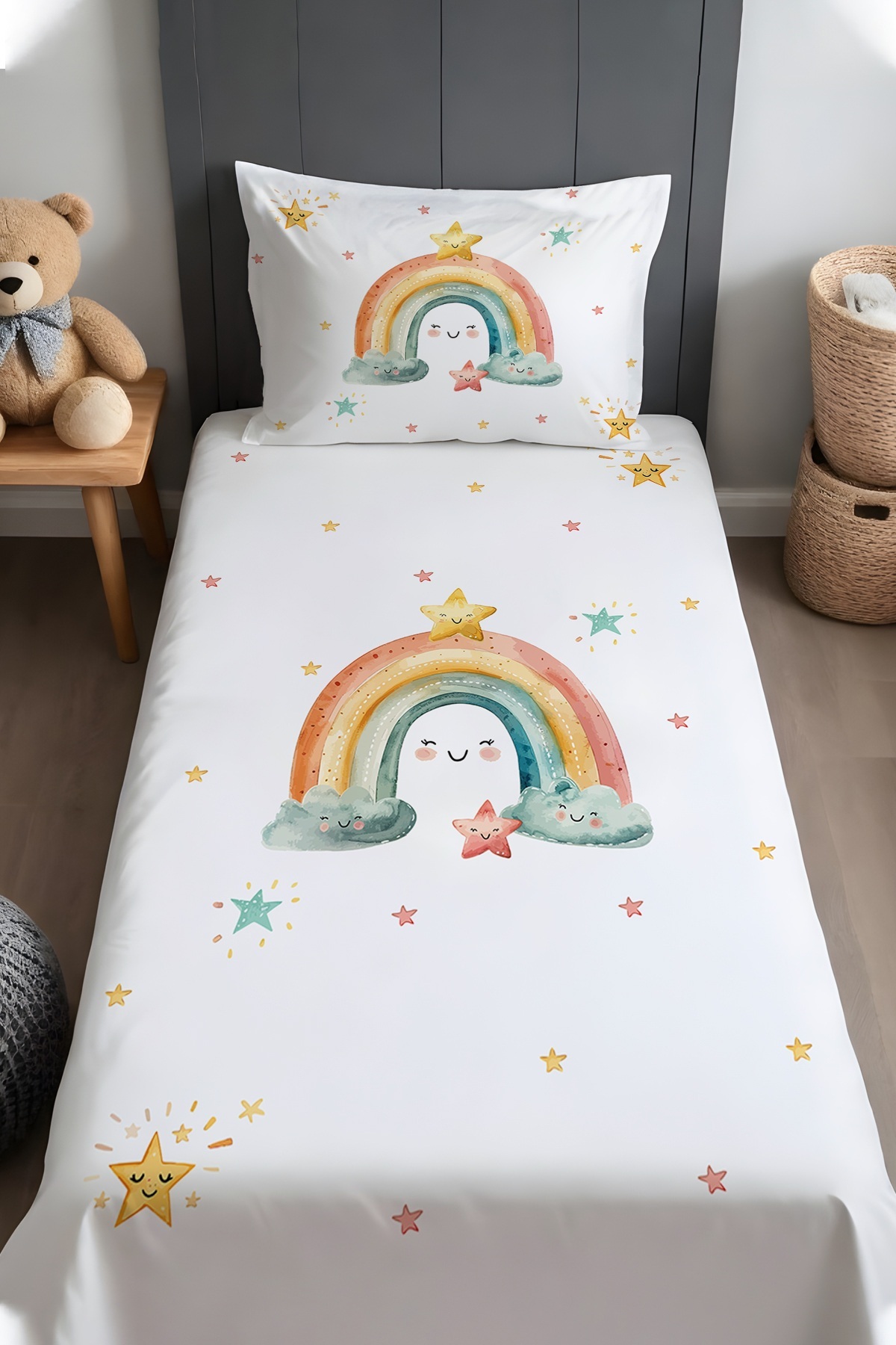 Evpanya قوس قزح مبتسم منقوش غطاء سرير وغطاء وسادة