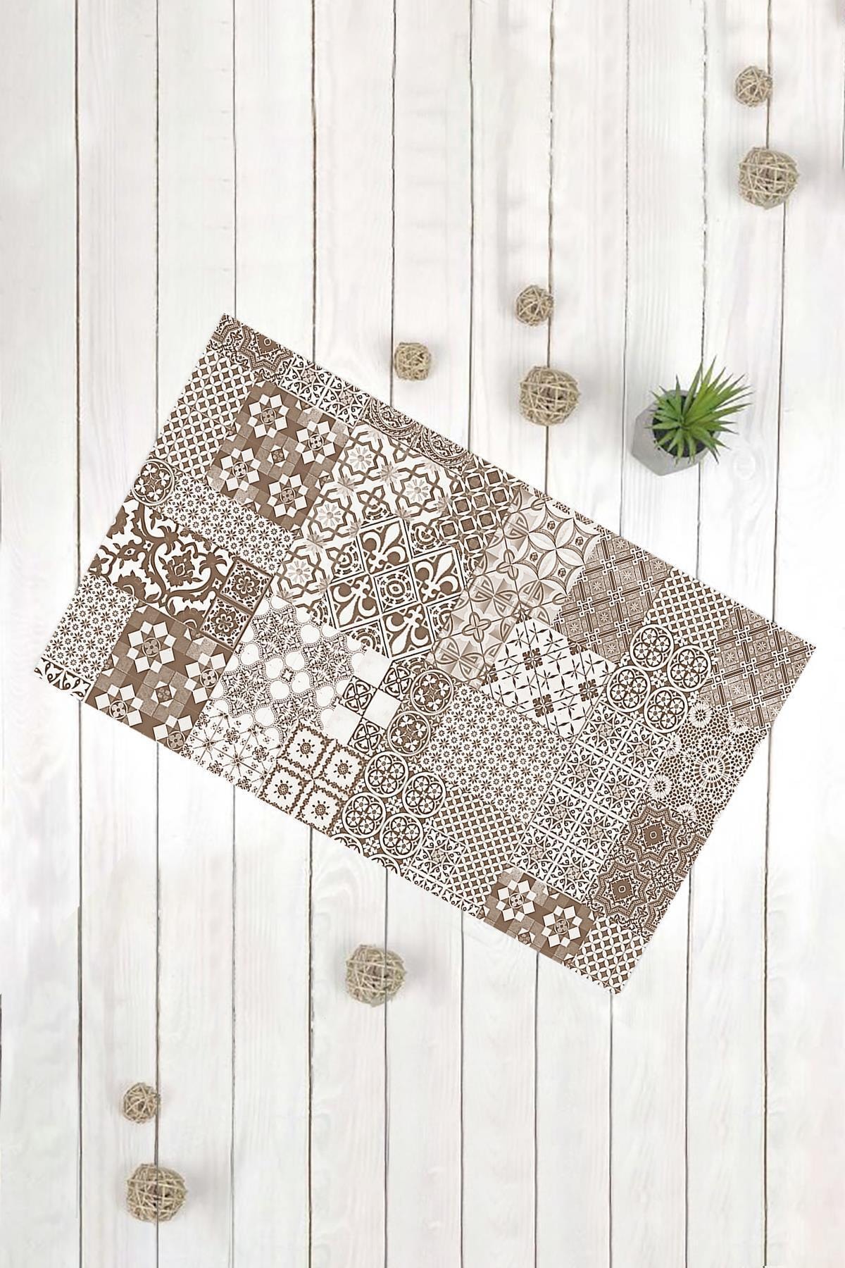 ميزات سجادة باب مزخرفة متعددة الأغراض بنمط مربع باللون البني الكريمي من Evsebu