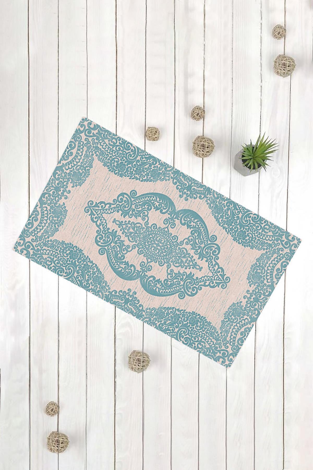 ميزات سجادة باب مزخرفة متعددة الأغراض باللون الأزرق بنمط كلاسيكي من Evsebu