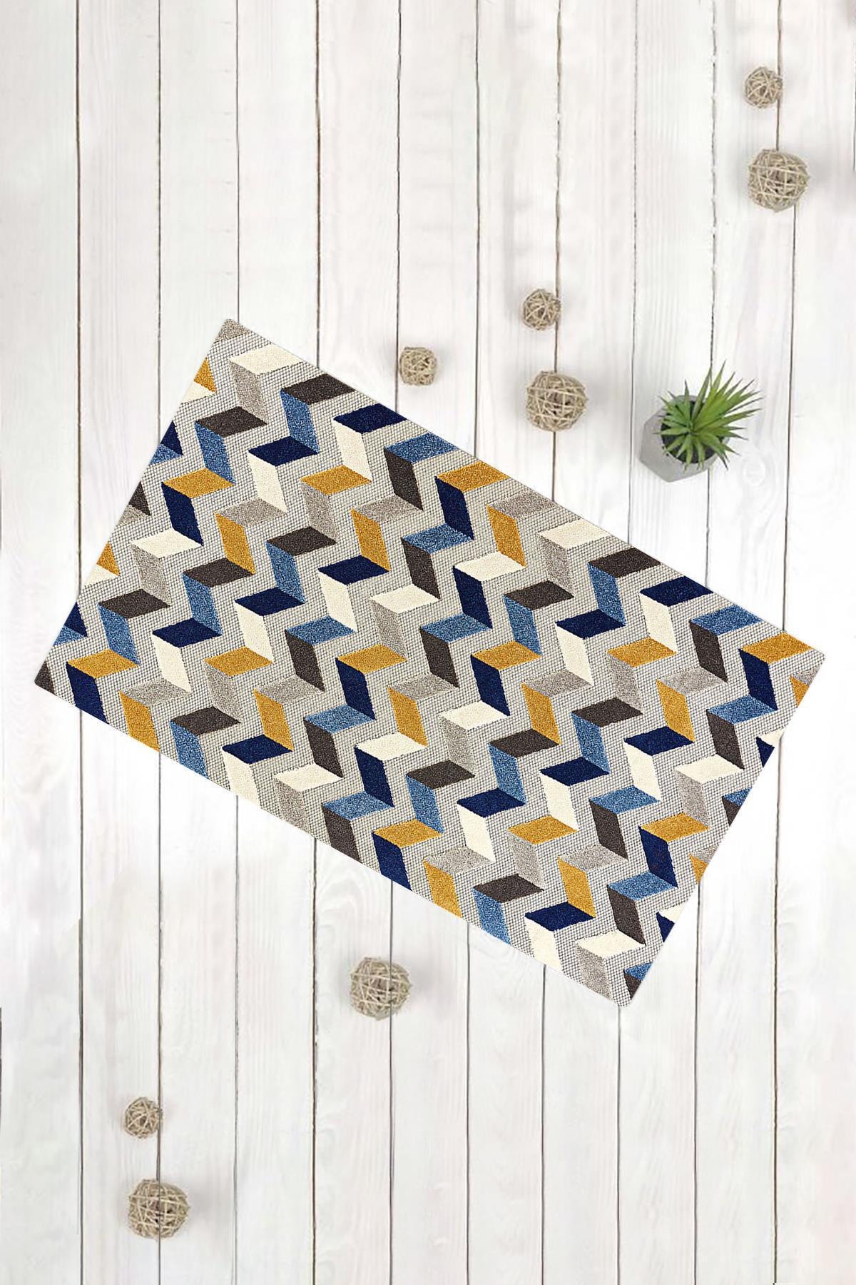 ميزات سجادة باب مزخرفة متعددة الأغراض بنمط متعرج باللون الأصفر والأزرق من Evsebu