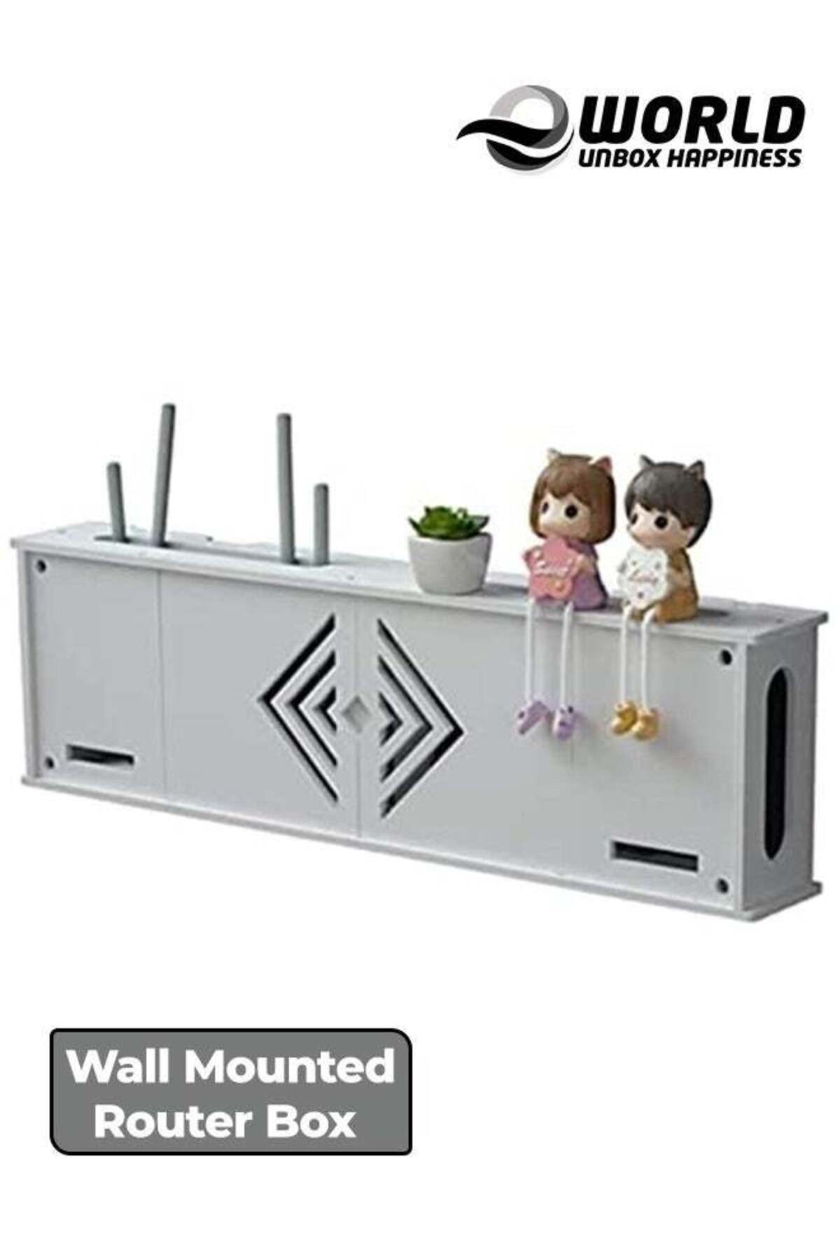 Eworld رف جهاز توجيه أنيق مثبت على الحائط مع حماية لوحة التوصيل، باللون الأبيض