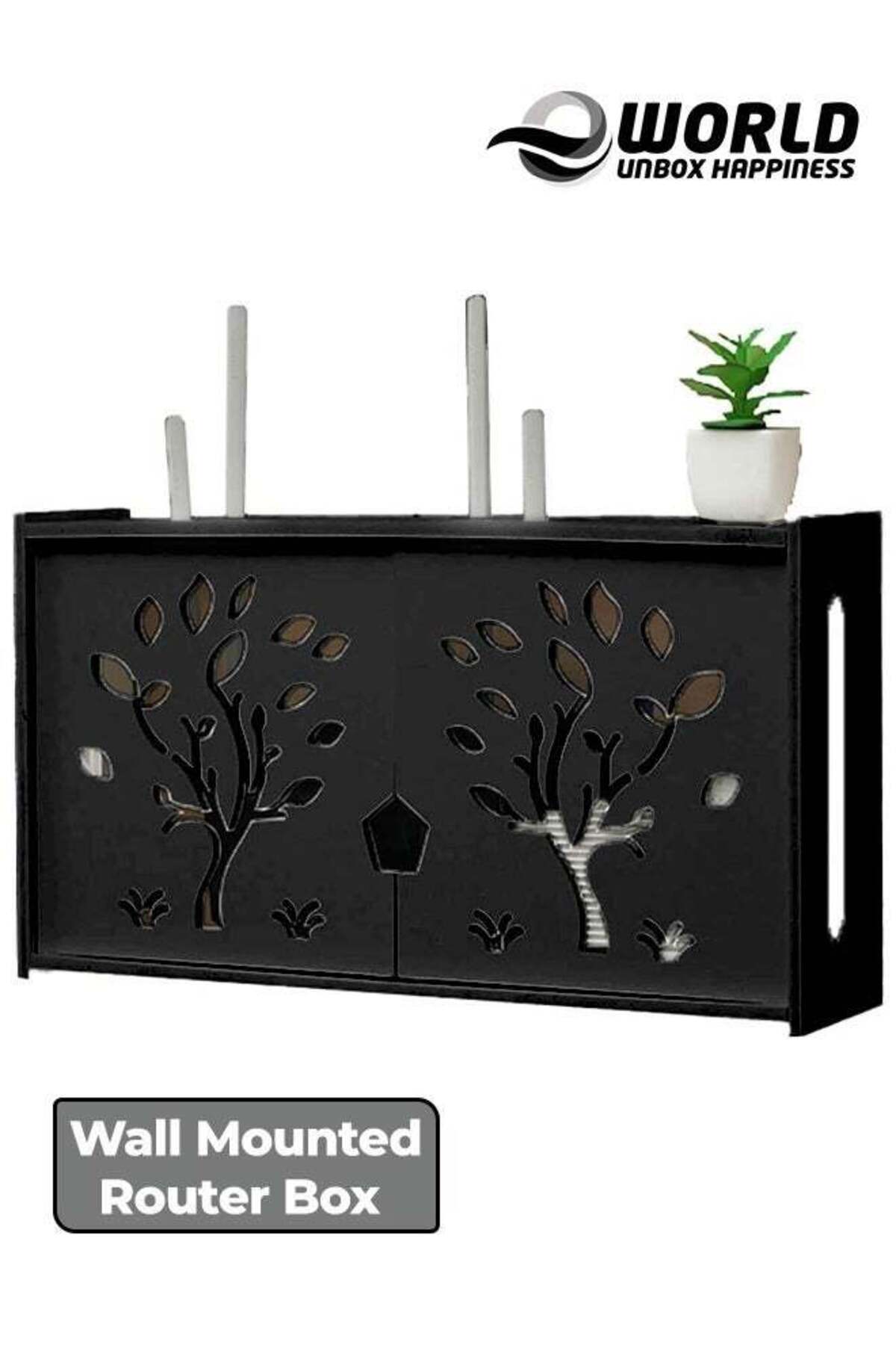Eworld رف جهاز توجيه مثبت على الحائط مع صندوق حماية لوحة التوصيل، أسود