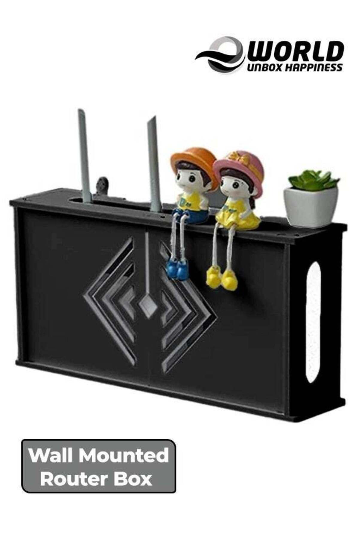 Eworld رف جهاز توجيه مثبت على الحائط مع صندوق حماية لوحة التوصيل، أسود
