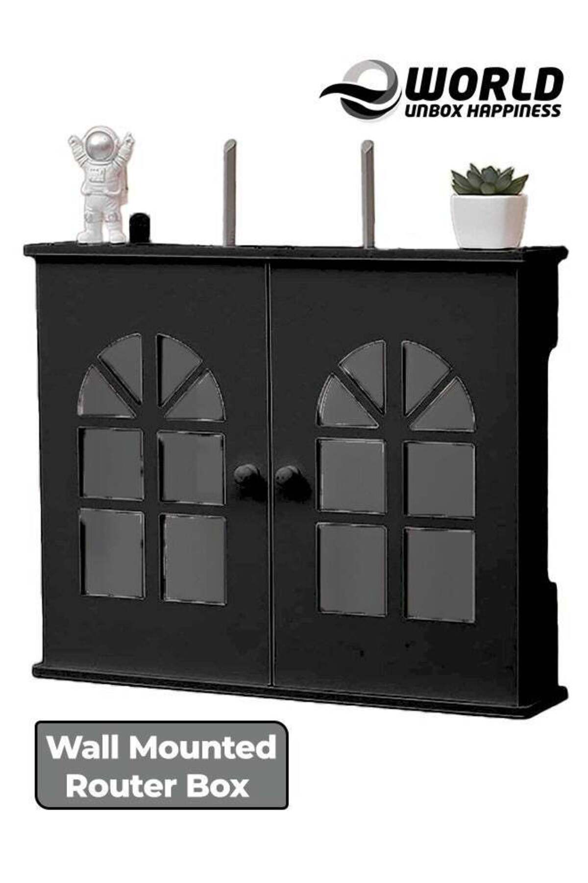 Eworld رف جهاز توجيه مثبت على الحائط مع صندوق حماية لوحة التوصيل، أسود