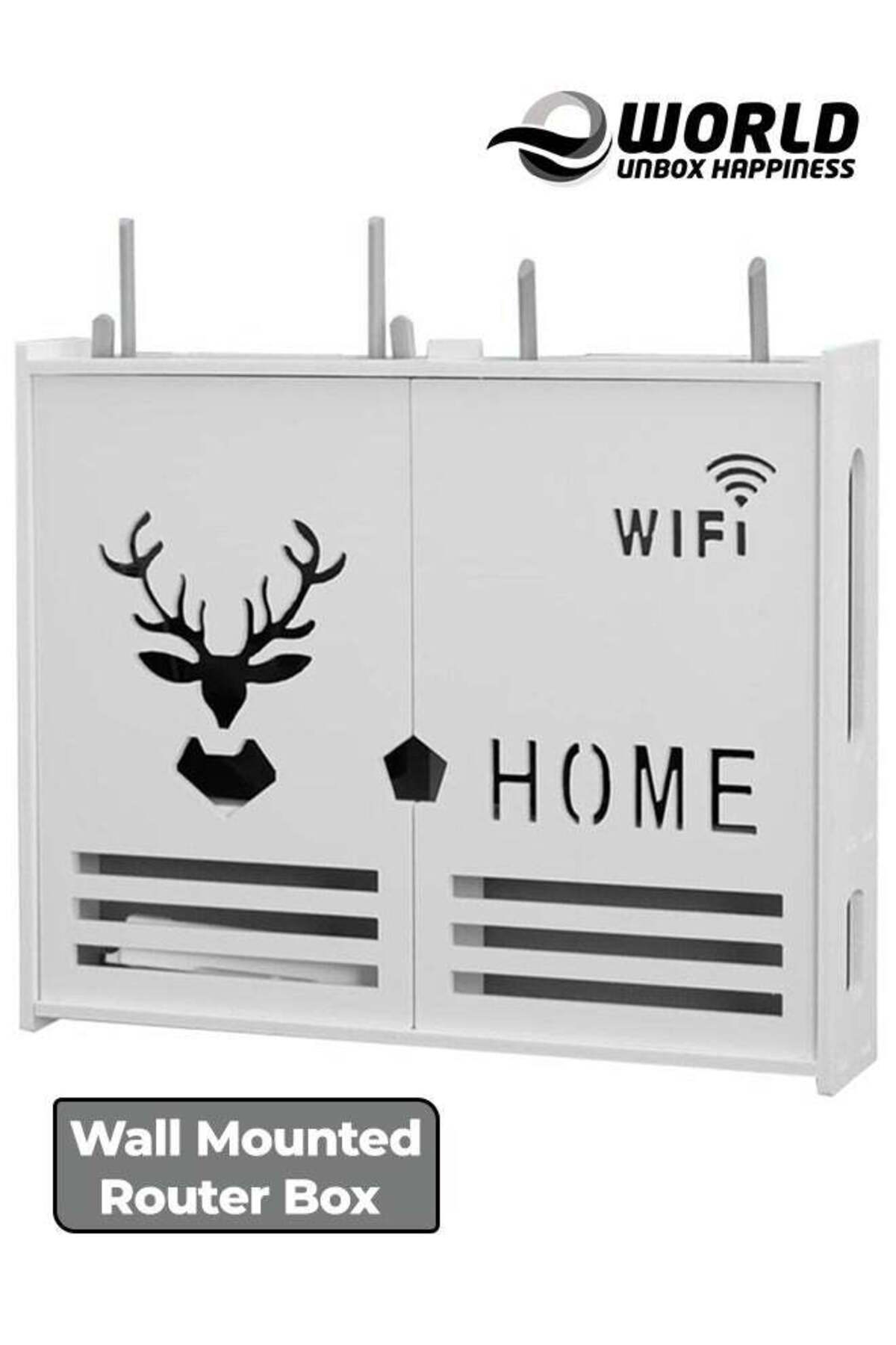Eworld رف جهاز توجيه مثبت على الحائط مع صندوق حماية لوحة التوصيل، أبيض