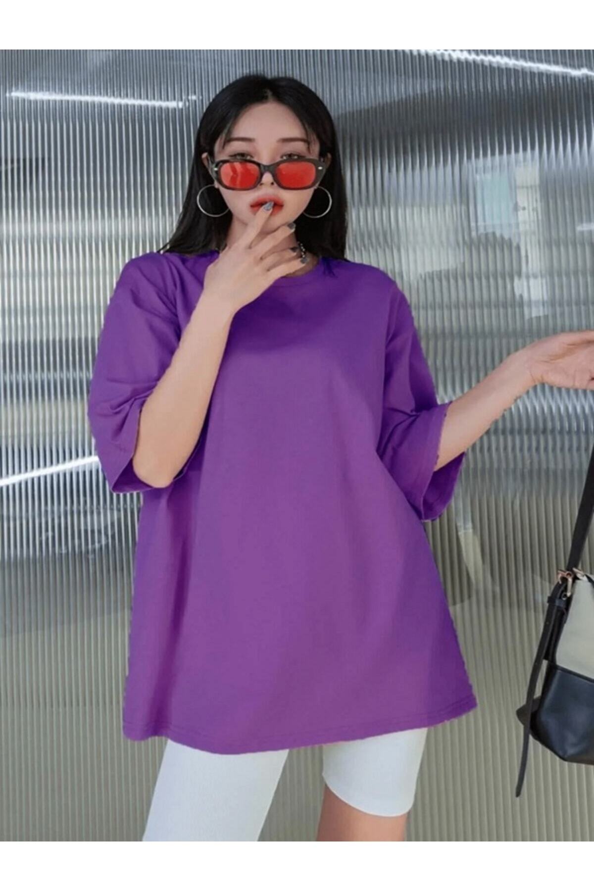 EXPECTED تي شيرت أساسي كبير الحجم بأكمام قصيرة ورقبة دائرية