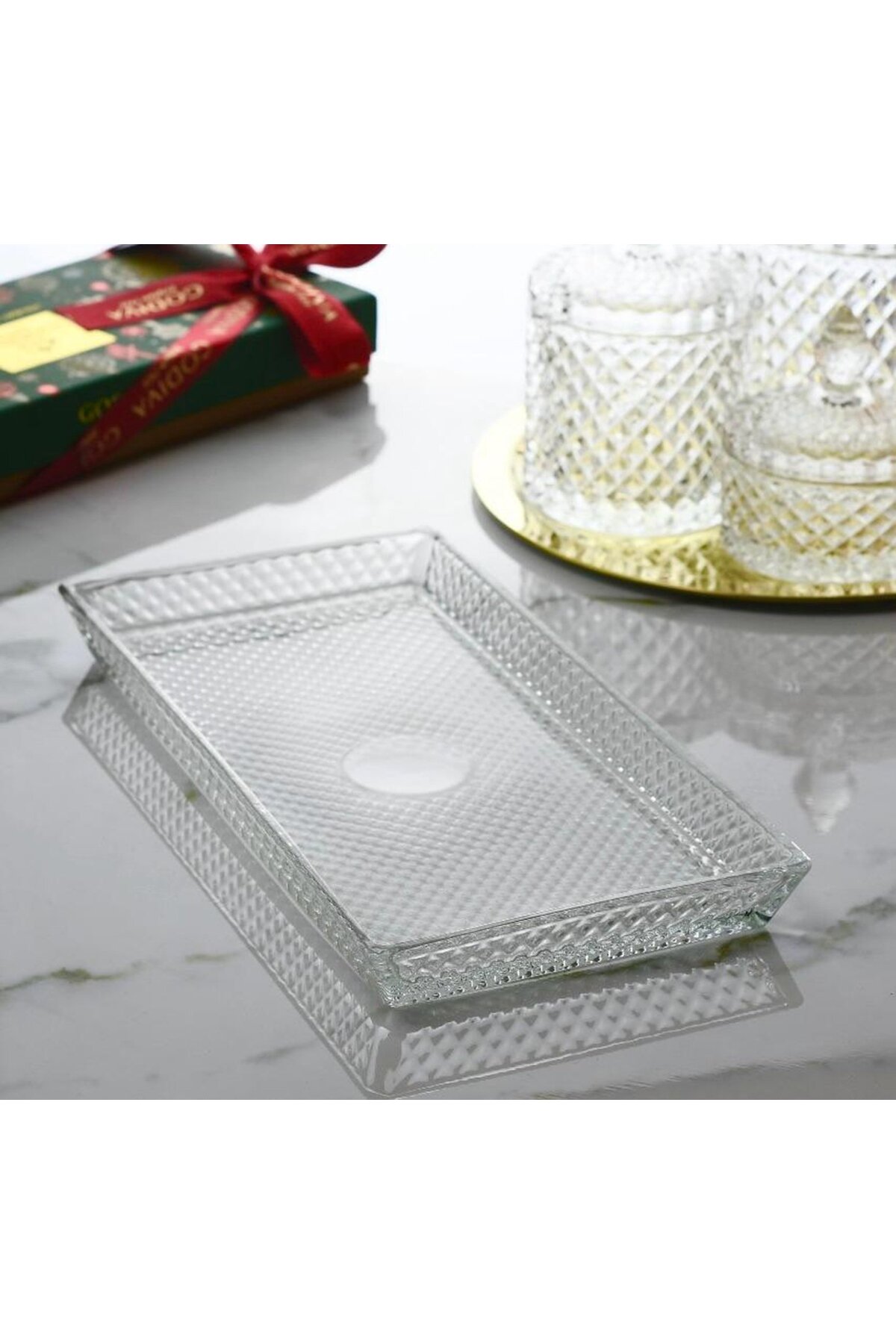FAIR HOME حامل عرض زجاجي مستطيل بنمط نقطة - طبق فاكهة