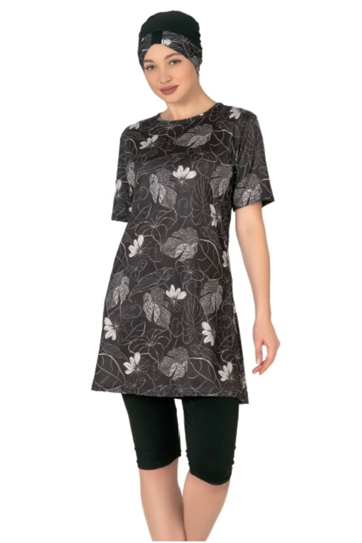 Fantasy 3455 ملابس سباحة نصف حجاب منقوشة على شكل ورقة شجر