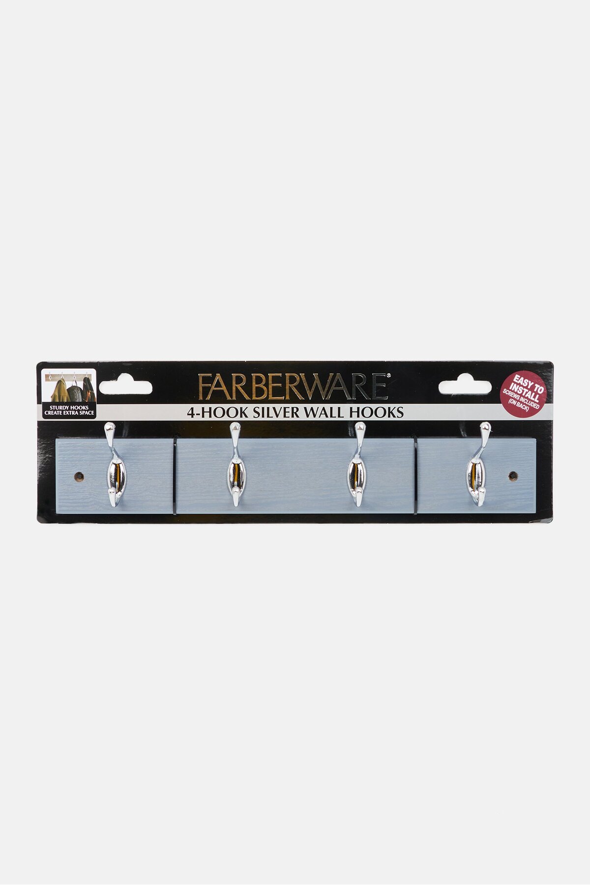 Farberware خطافات حائط فضية بأربعة خطافات، فضية