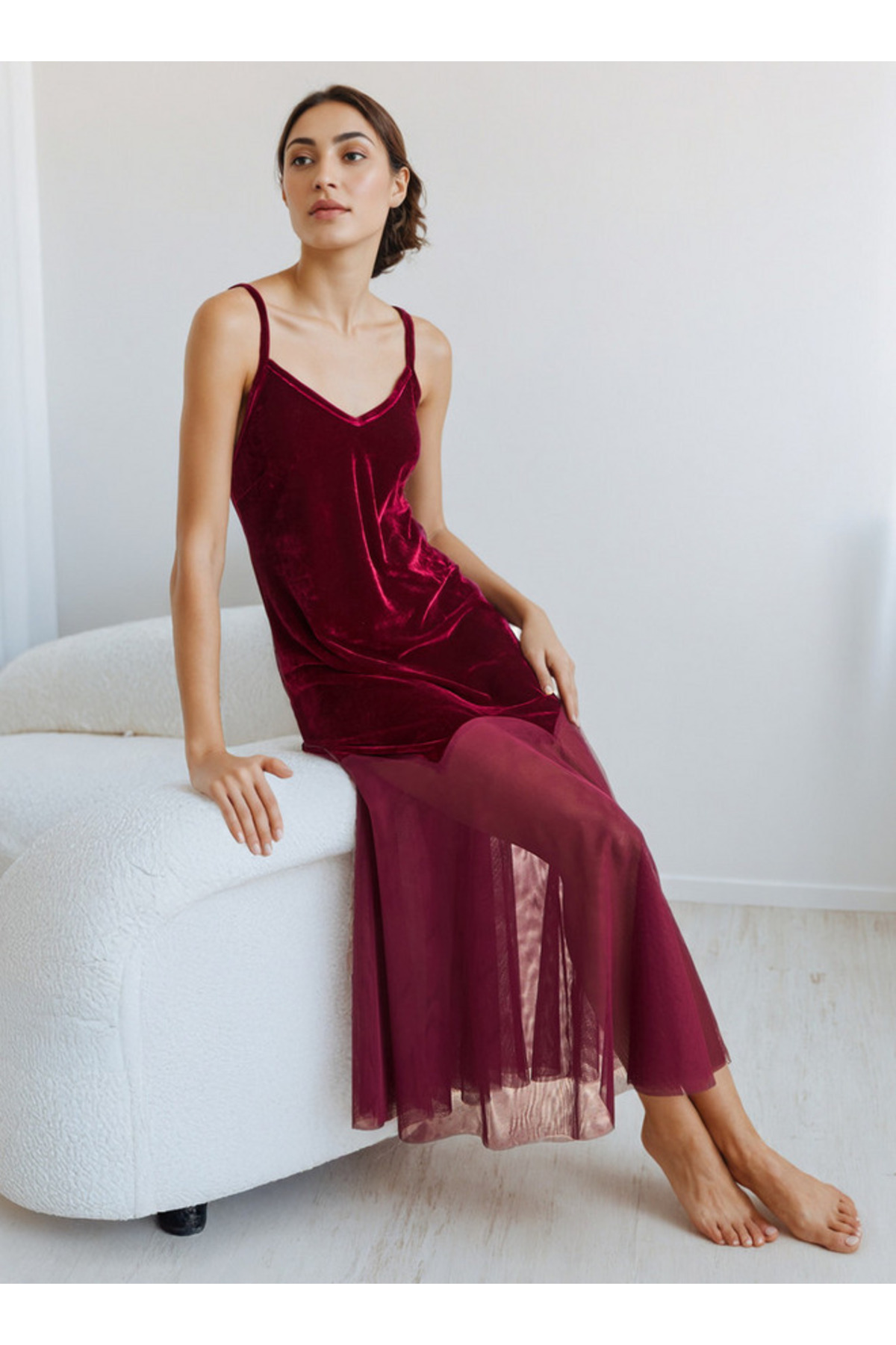 ميزات قميص نوم من مزيج البوليستر مع رقبة على شكل حرف V من FAV