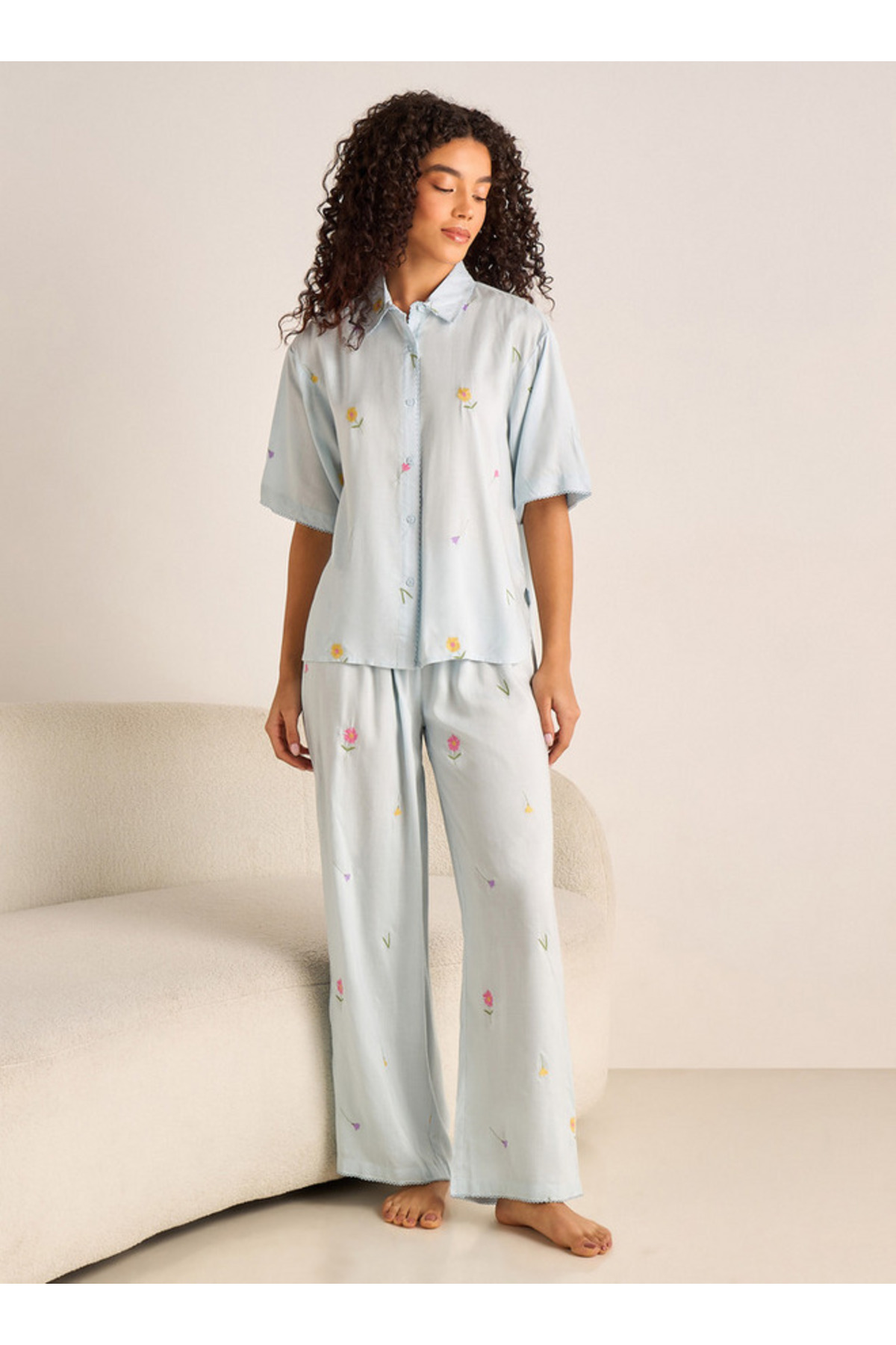 ميزات طقم بيجاما قميص بأزرار وبنطال من FAV