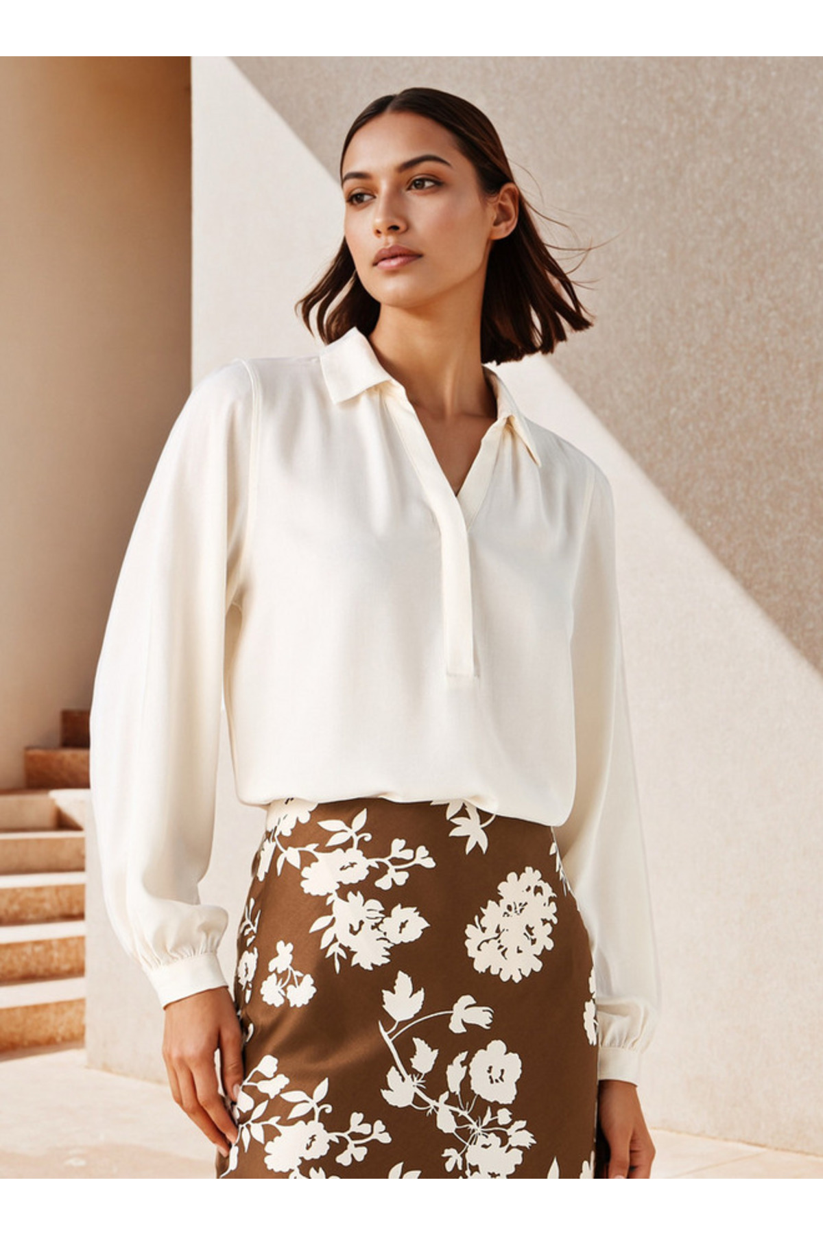 ميزات بلوزة بياقة منقوش وقصّة عادية من FAV
