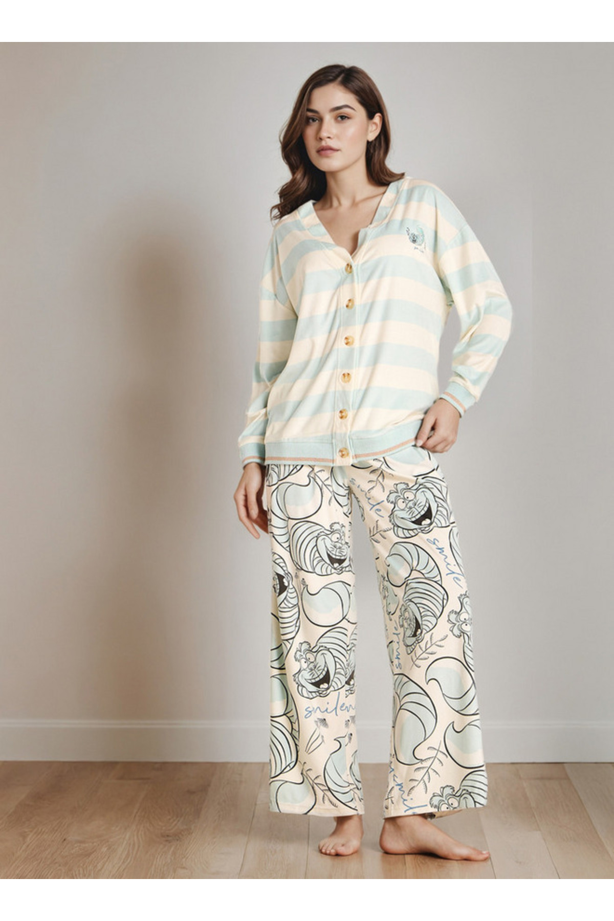 ميزات بيجامة مطبوع بجاكيت مخطط من FAV