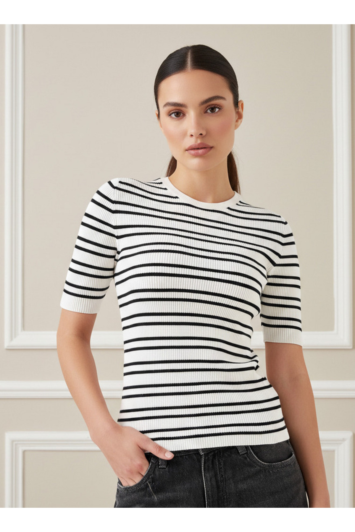 ميزات سترة مخططة طاقم الرقبة من FAV