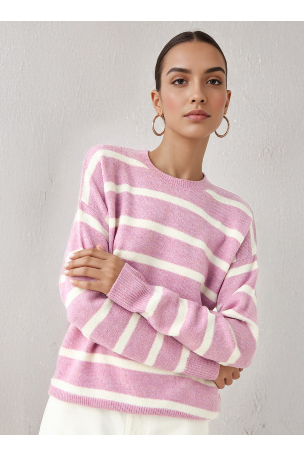 ميزات سترة مخططة طاقم الرقبة من FAV