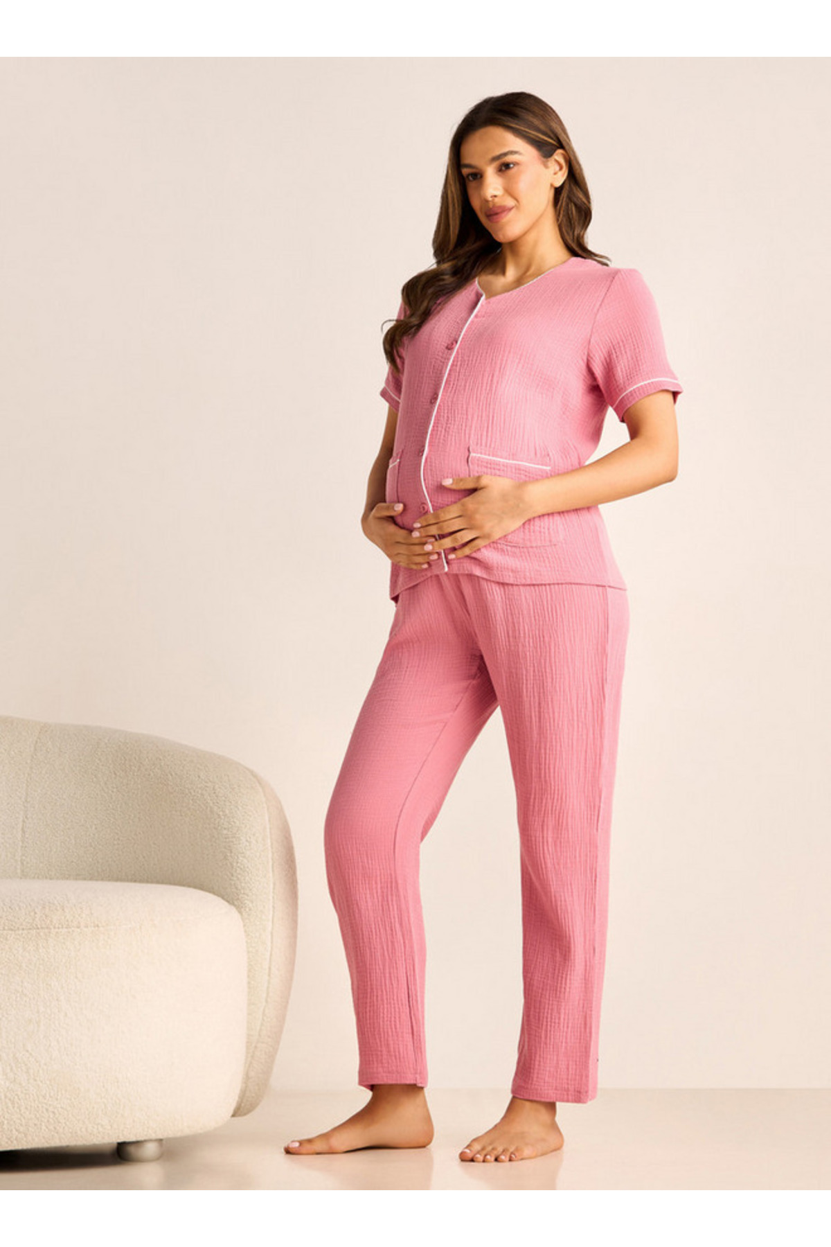 ميزات طقم بيجامة مطاطية وقميص حمل منقوش من FAV