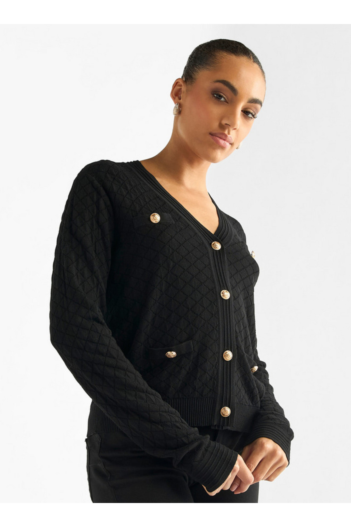 ميزات كارديجان بفتحة رقبة على شكل حرف V وأزرار من FAV