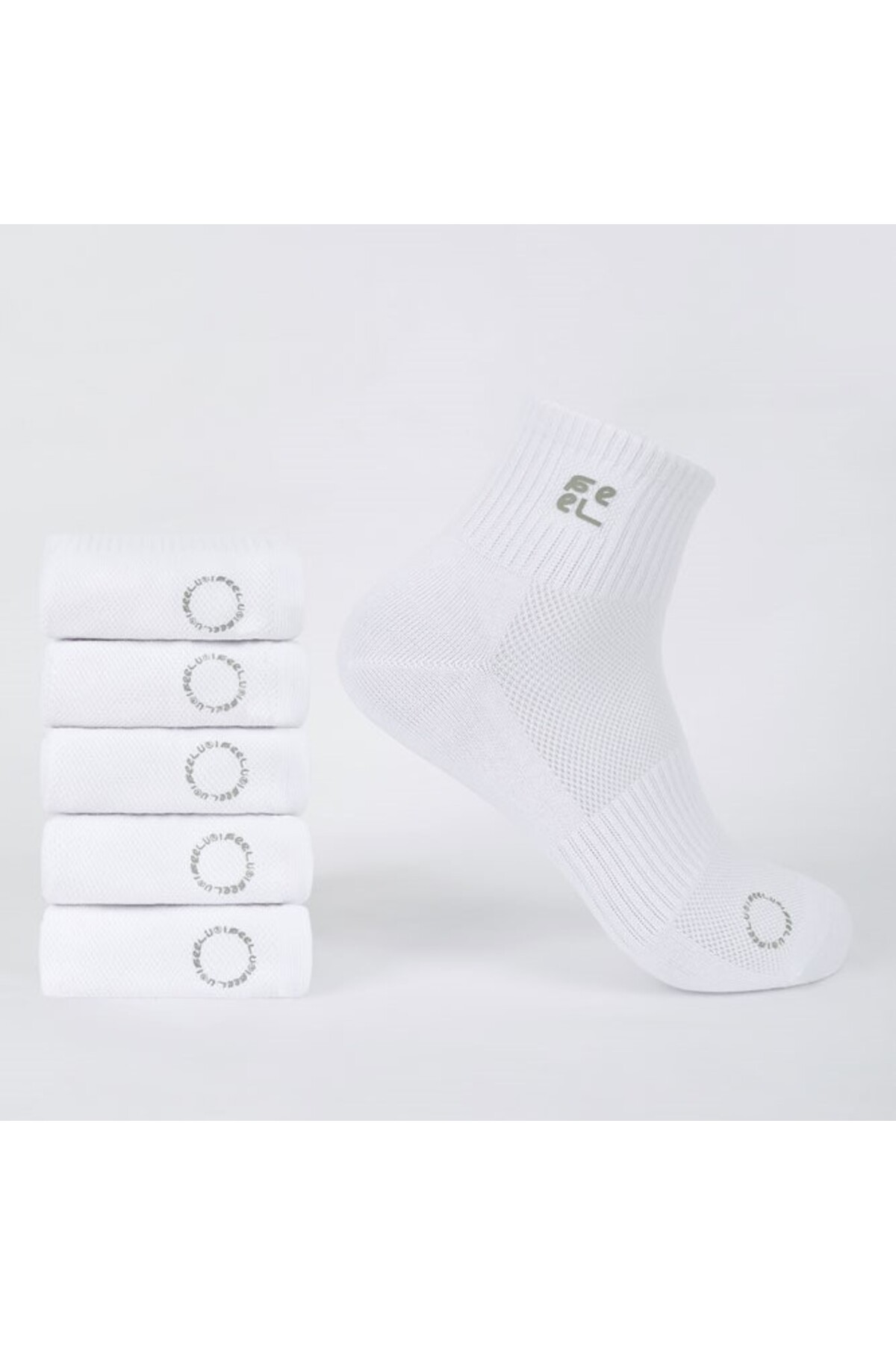 FEEL جوارب رجالية متوسطة الحجم - 5 قطع - أبيض