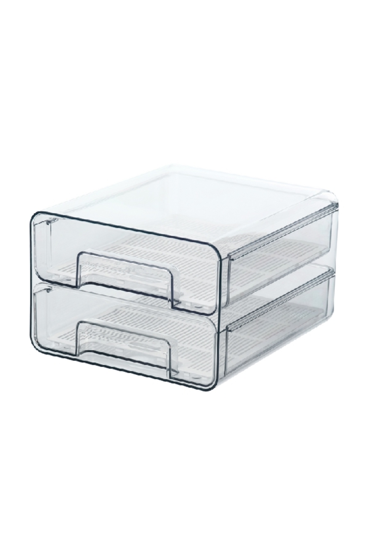 مقدمة حول Felli منظم درج ثلاجة مستطيل بلاستيكي مكون من طبقتين
